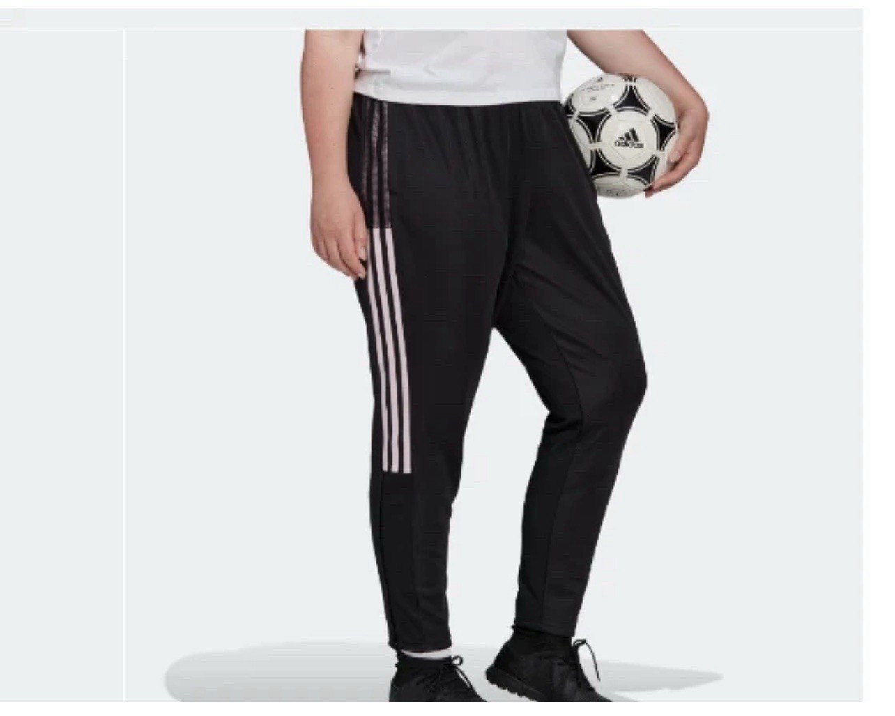 как выглядит adidas Tiro Pants Womens Plus AeroReady Knit Soccer Training Black Pink Sz 3X фото