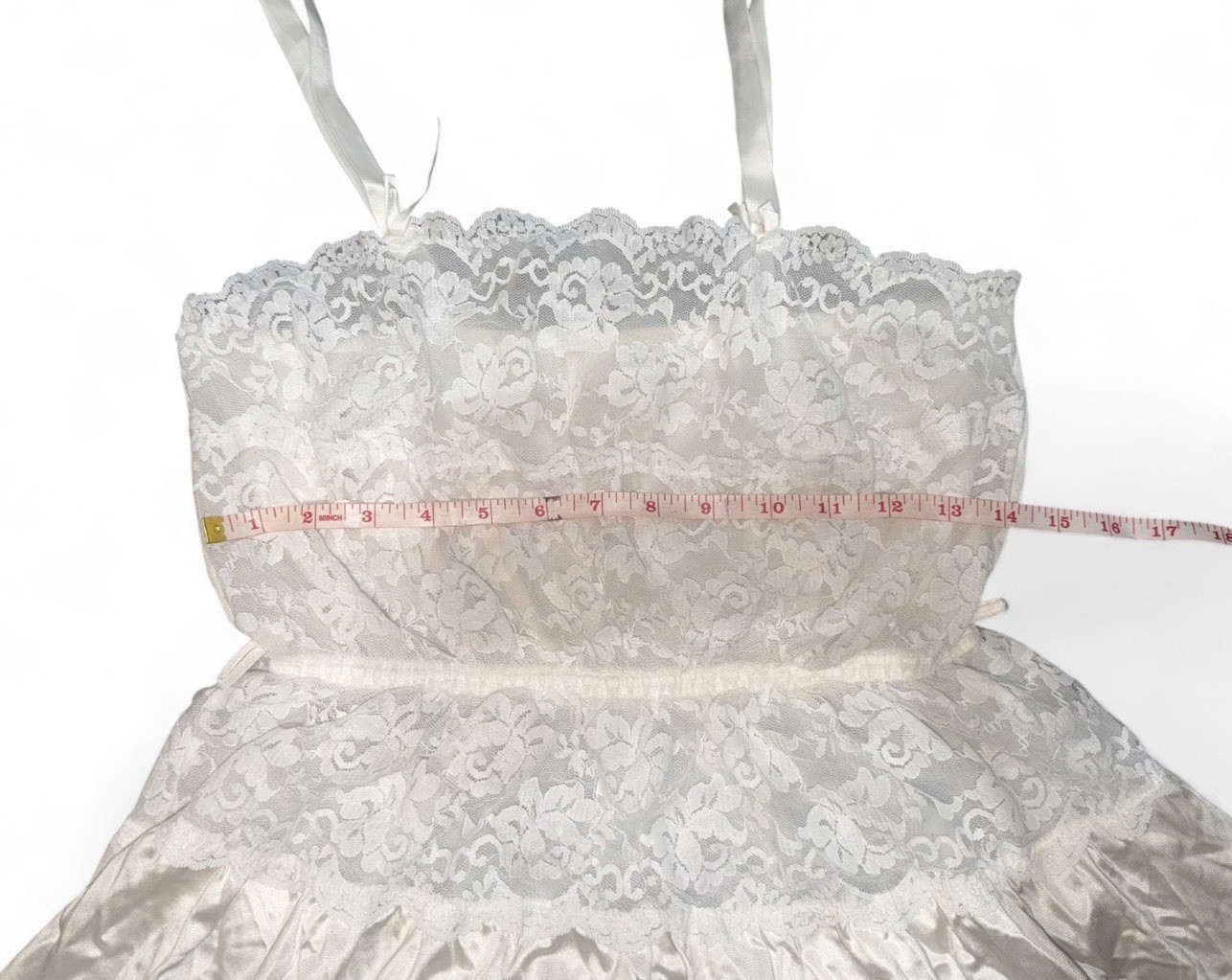 Vintage White Lace Slip Dress Size XS S Coquette Cottagecore Nightgown Lingerie