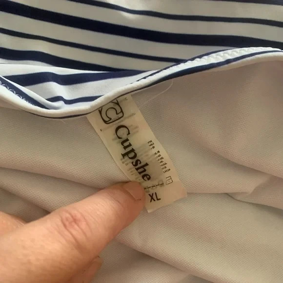 как выглядит CUPSHE Womens Cutout One Piece Blue White Striped Size XL фото