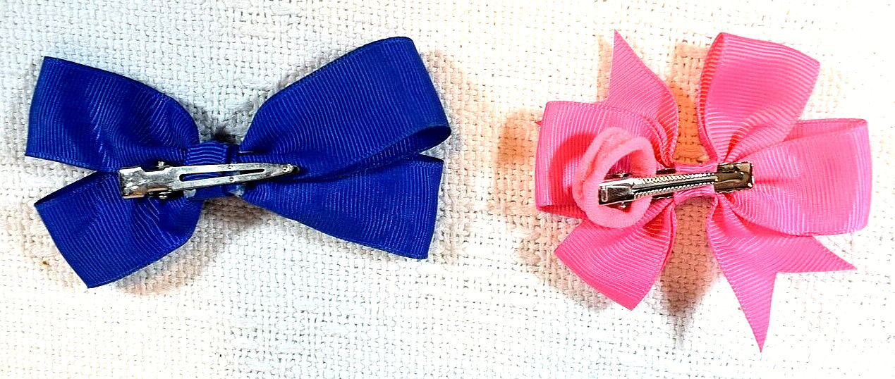 как выглядит Stylish Toddler/Girls Fabric Hair Bows Lot of 9 - Gray, Pinks, Blues Yellows фото