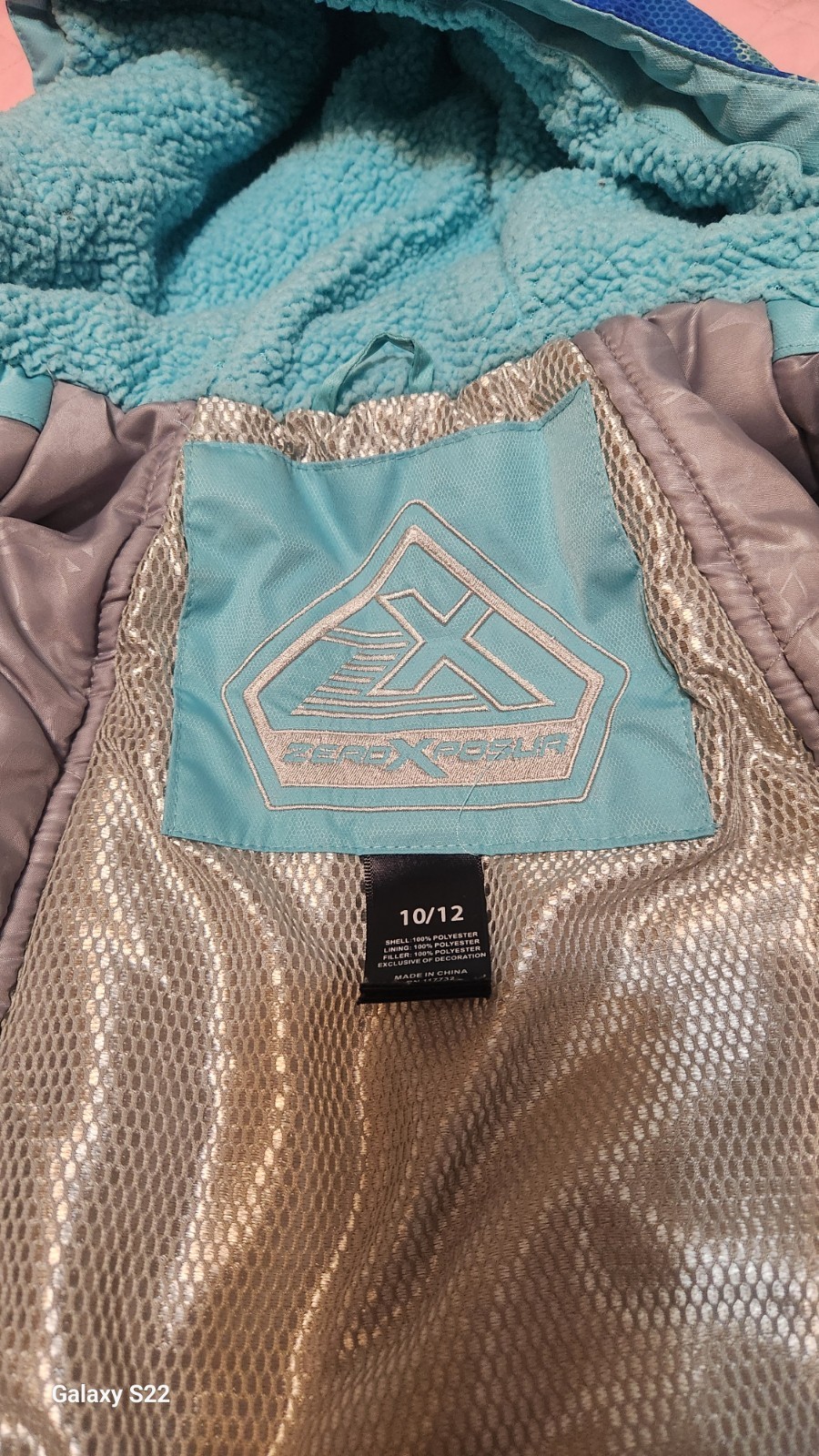как выглядит ZeroXposur Kids Ski Jacket Blue Green 10/12 Hooded Insulated фото