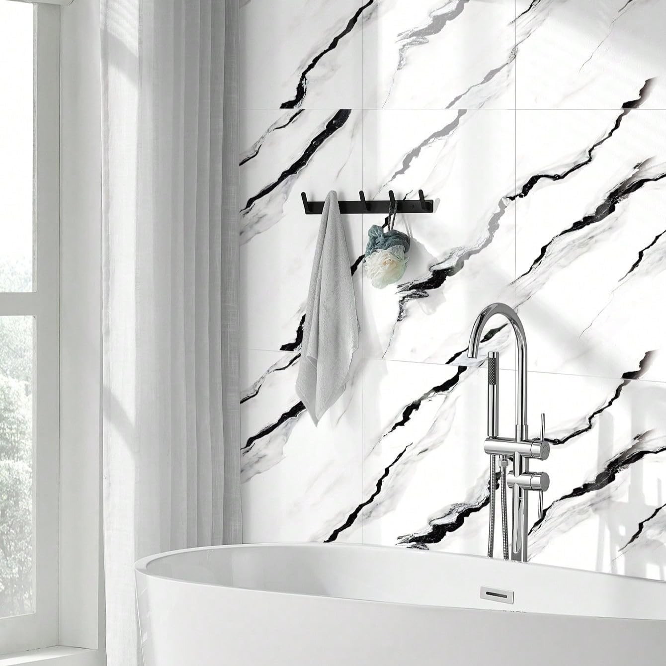 как выглядит 10pcsMarble Peel and Stick Waterproof Wall Panels,Backsplash Tile-23.6"x11.8"... фото