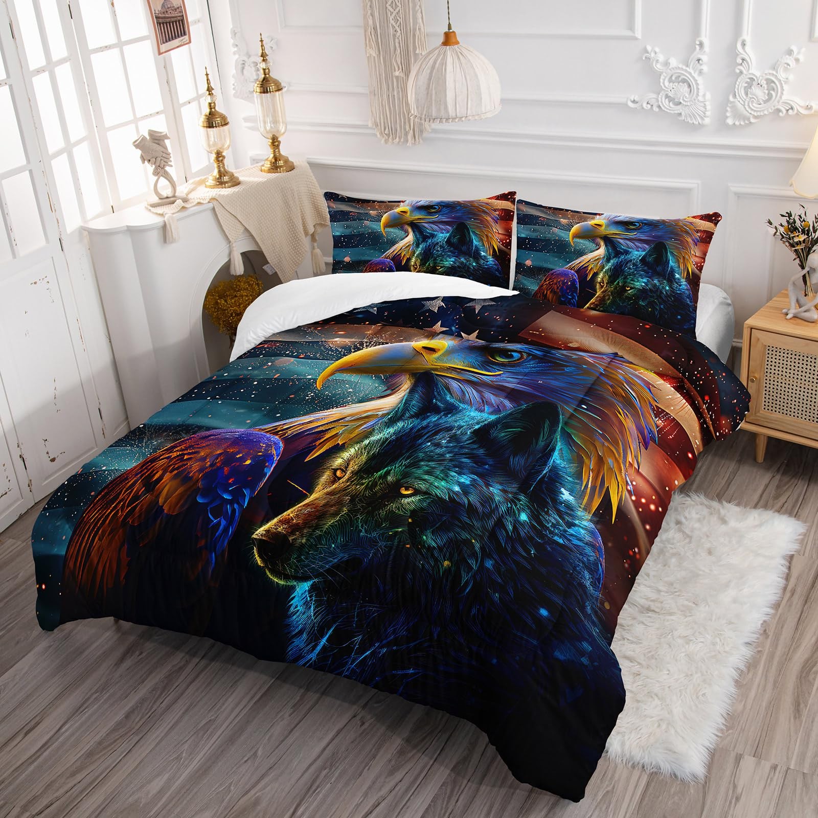 Eagle Comforter Set for Boys,Wolf Bedding Set Twin Size Wild Animal Comforter...
