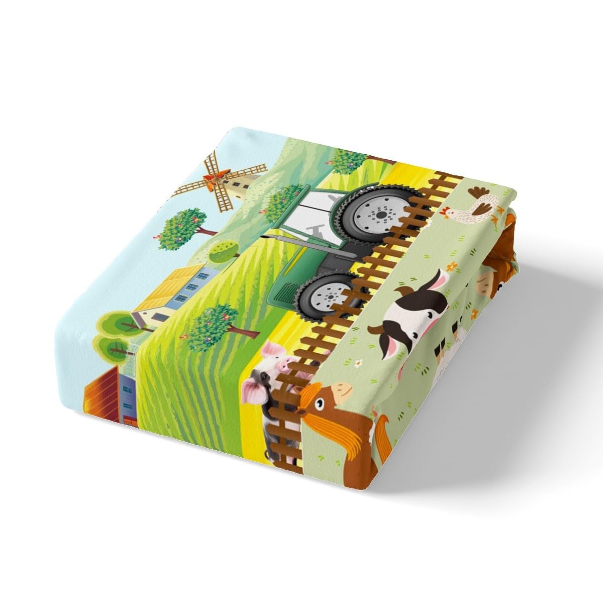 Kids Cartoon Farm Animals Bed Sheet Set Toddler Cute Tractors Fitted Sheet fo...