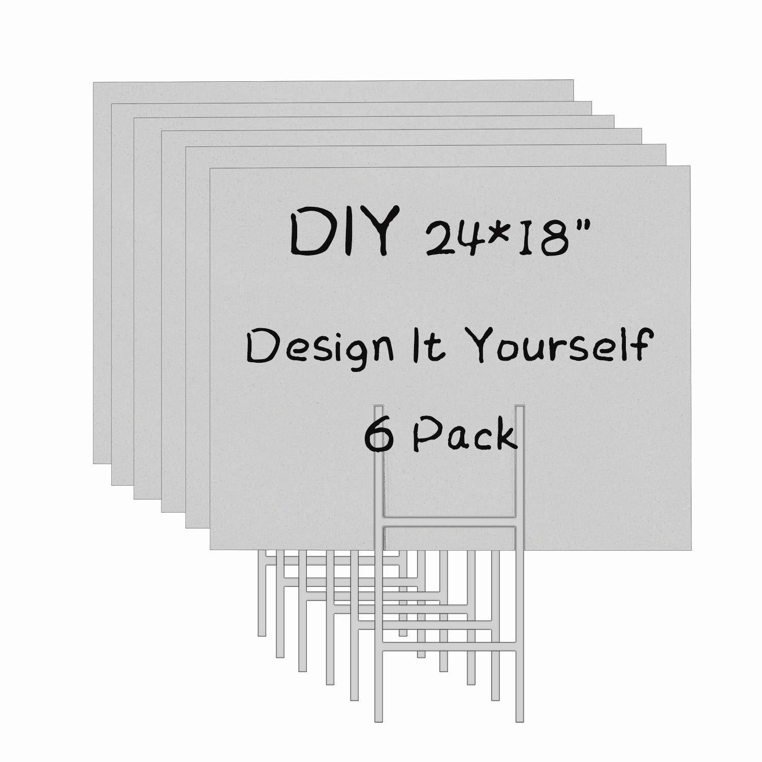 6 Pack 24x18 White Blank Lawn Yard Signs Corrugated Plastic with Durable H-...