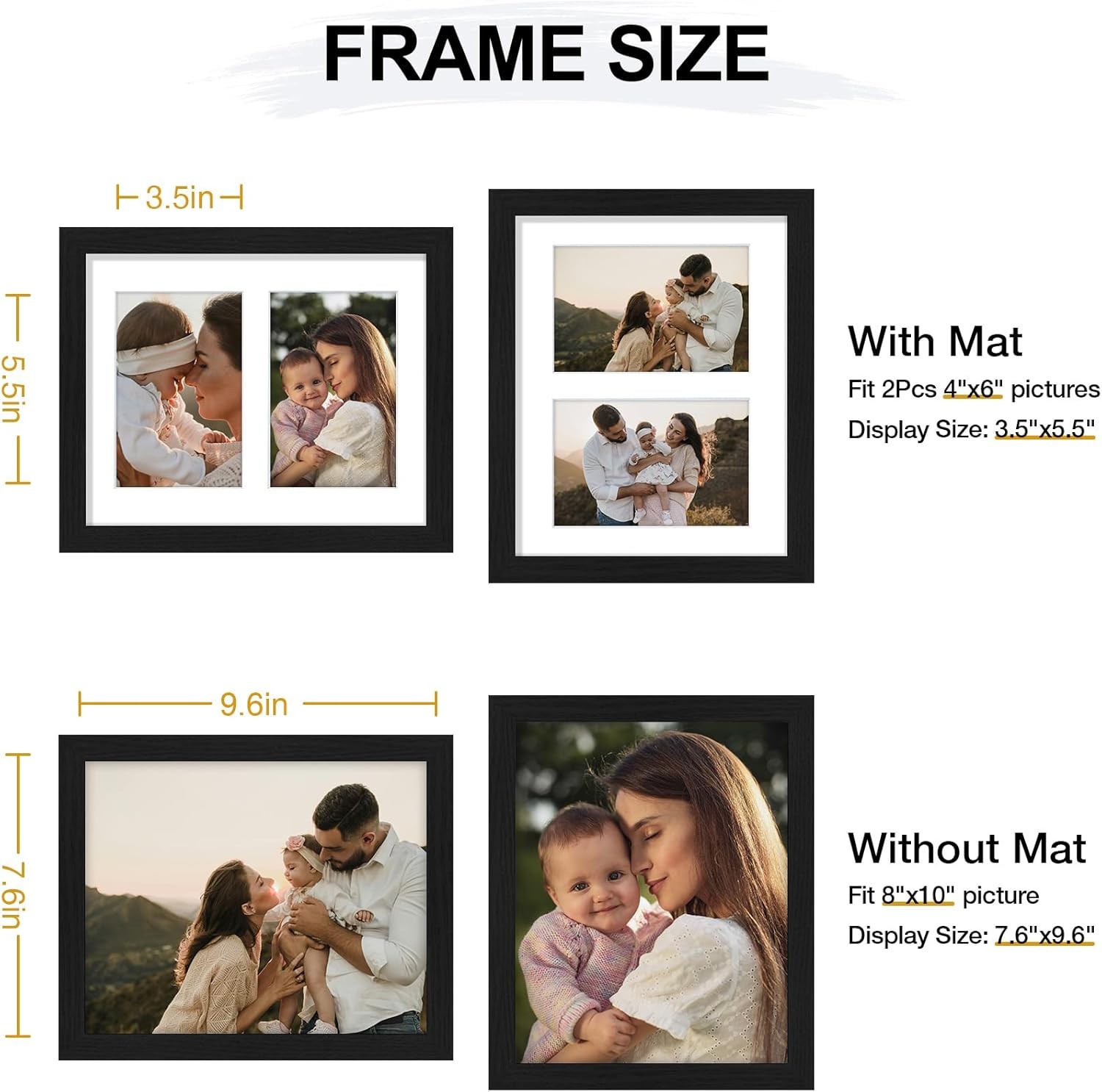 Vittanly 8x10 Collage Picture Frame, Displays 2Pcs 4x6 Pictures with Mat or 1Pcs