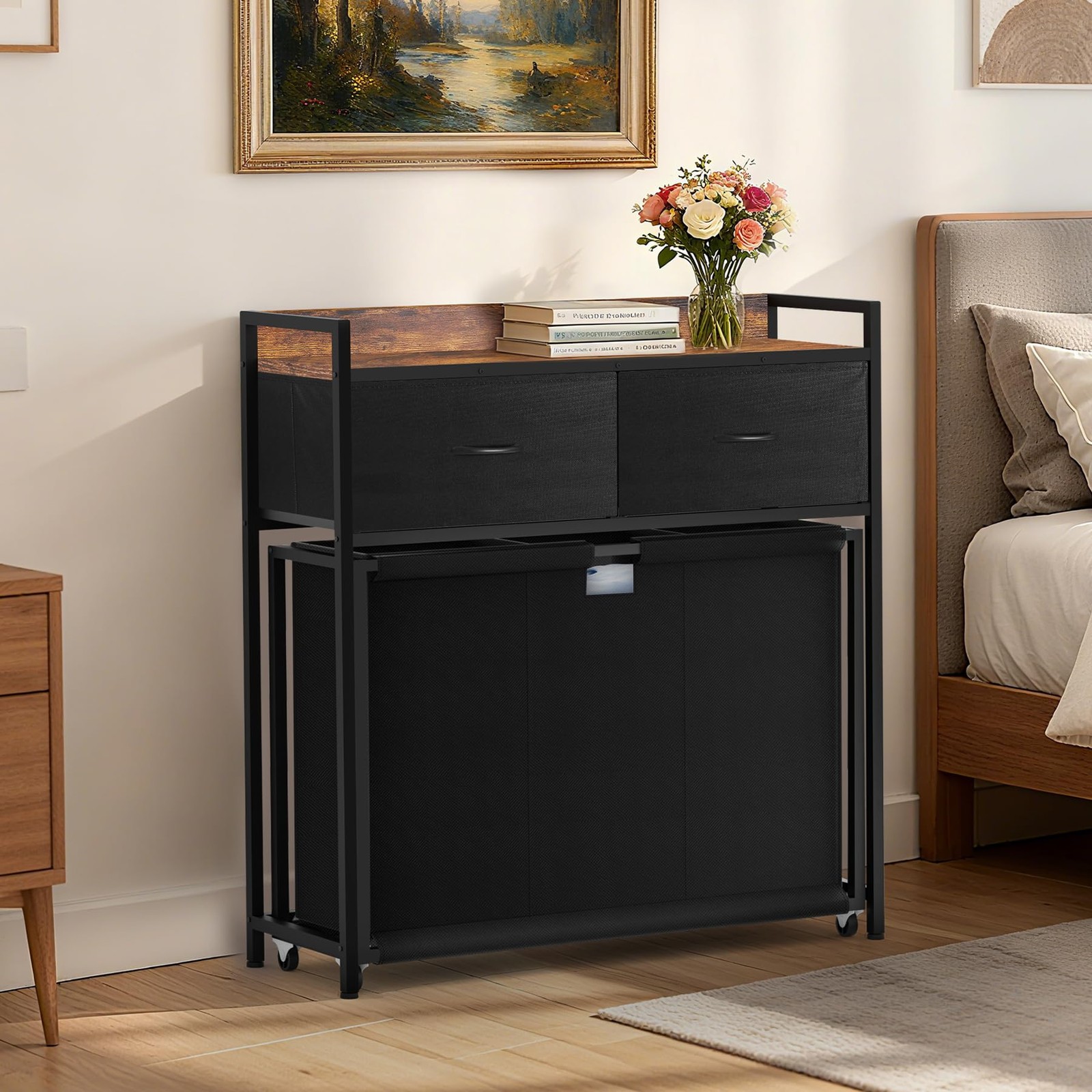 Laundry Hamper with 3 Section Rolling Bags Laundry Sorter with Wheels