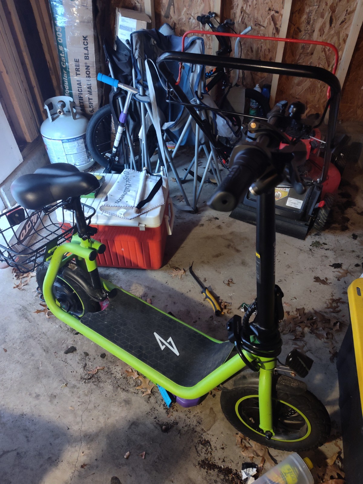 как выглядит R1 Green Seated Electric Scooter Folding Design with Basket and Comfortable Seat фото