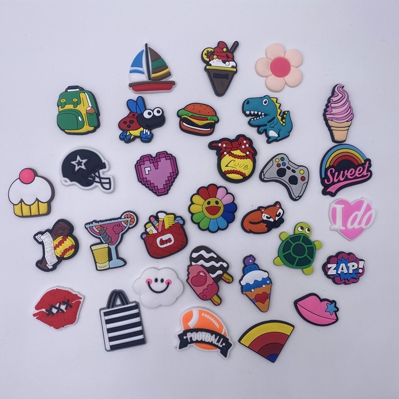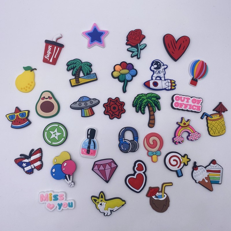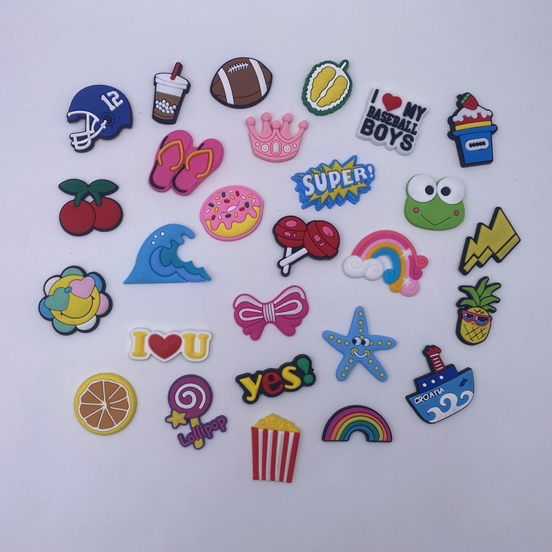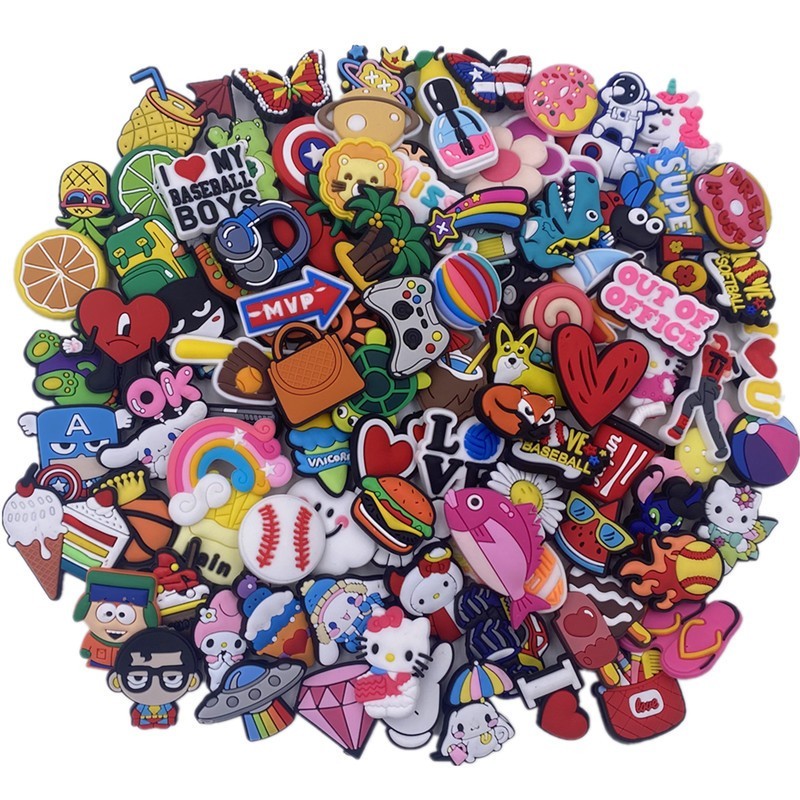 как выглядит 90 Pcs Mixed Pvc Shoe Charms Lot Different Charms Fit For Croc Clog Sandals USA фото