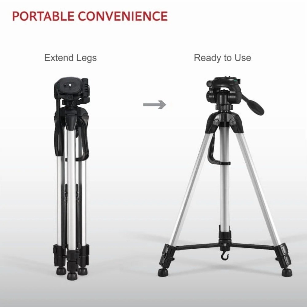 62 Inch Camera Tripod with Pan Tilt Head Quick Release Plate and Non-Slip Rubber