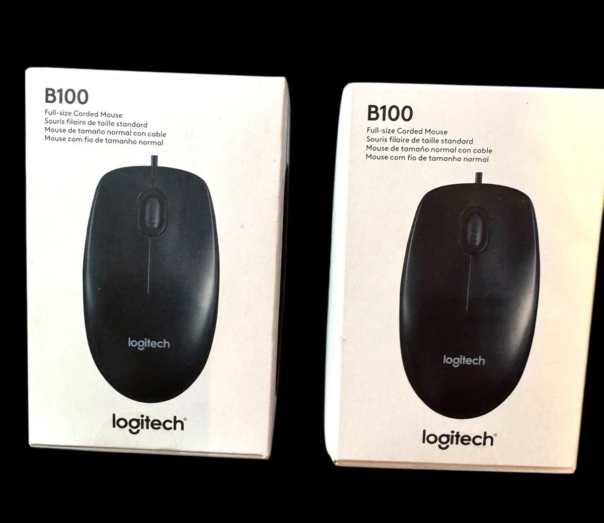 Logitech B100 USB Standard Wired Mouse Set Of 2 New In Box