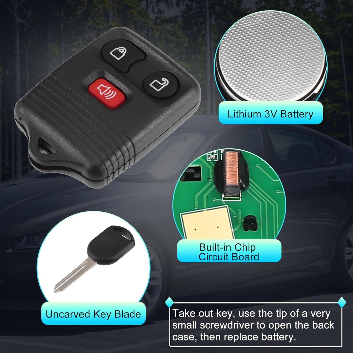 • 315MHz Keyless Entry Remote Ignition Transponder Key Fob 3 Buttons for F-150 F-2