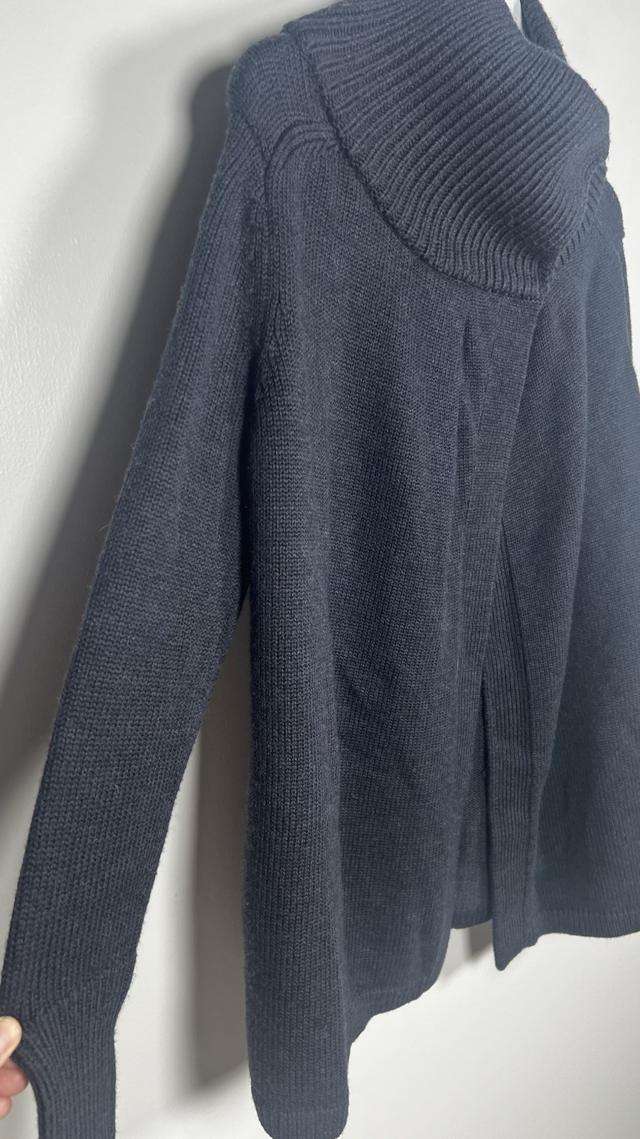 как выглядит Lululemon Chunky 100 Merino Wool Karmic Cocoon Wrap Sweater Size 6 Dark Gray фото