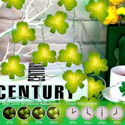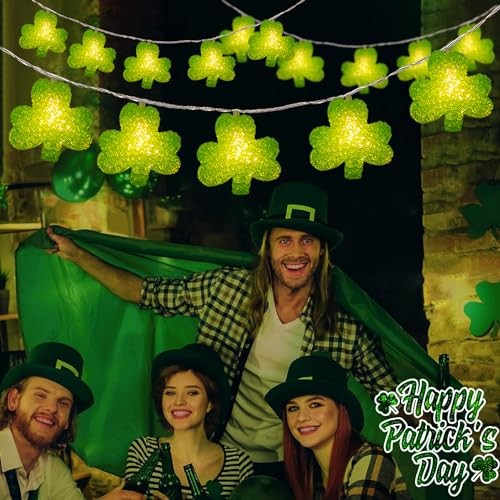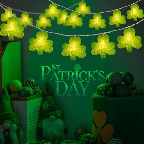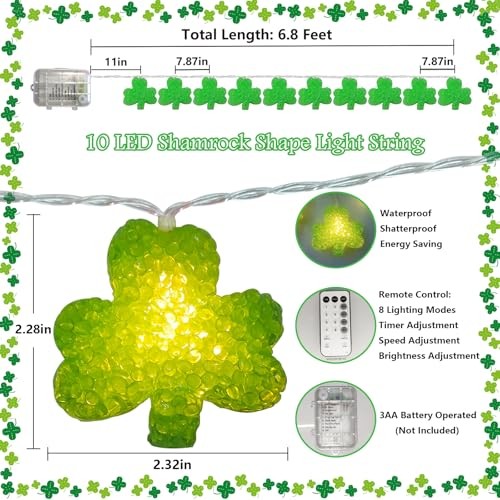 Green Shamrock Lights Battery Operated 6.8Ft 10 LED Lucky Clover Lights with