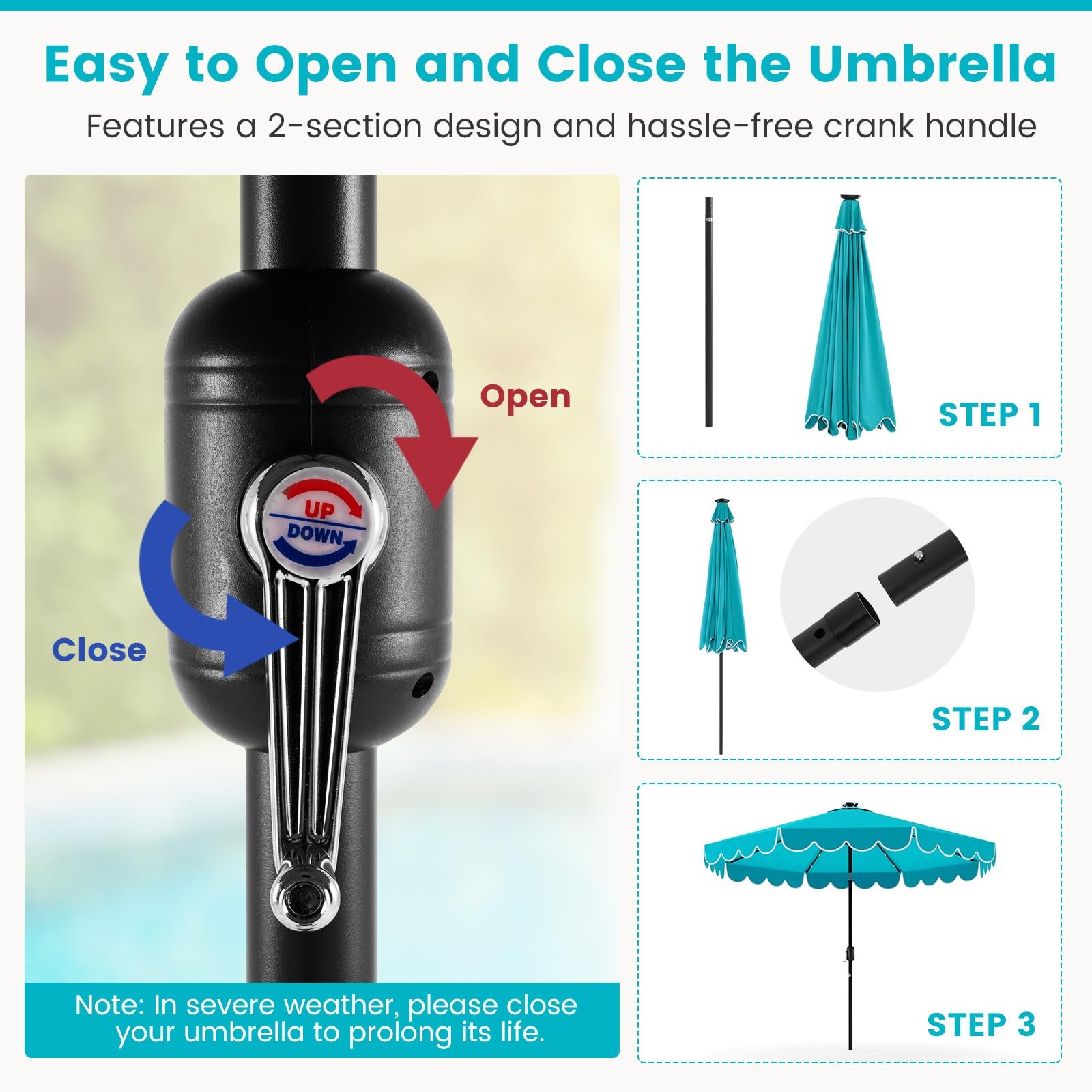 9 FT Solar Patio Umbrella 2-Tiers Scalloped Table Market Umbrella Turquoise