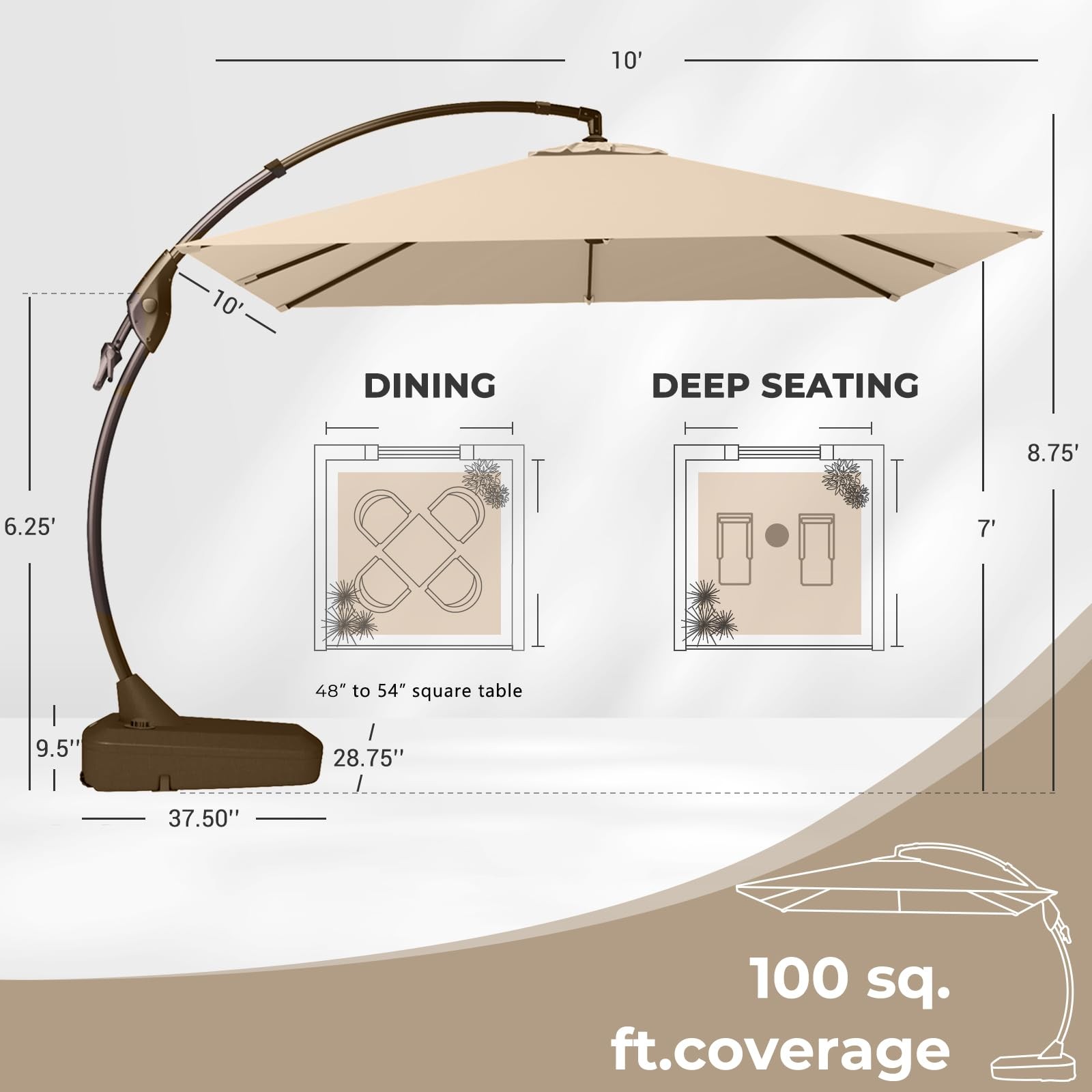 10x10 FT Offset Umbrella Large Square Aluminum Cantilever Umbrella Base