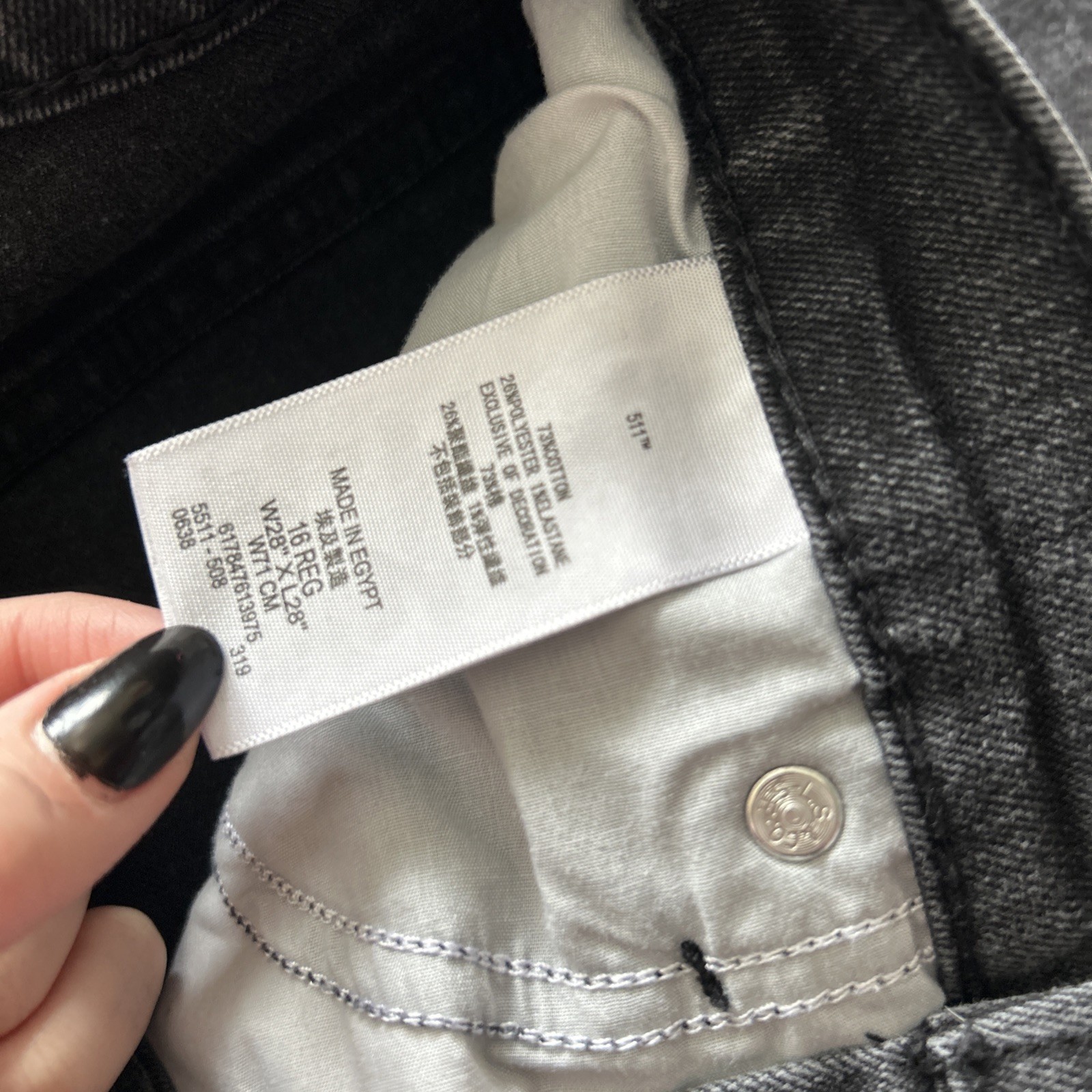 как выглядит Levis 511 Slim Kids Jeans Size 16 Black Denim 500 Series 28X28 Heavy Material фото