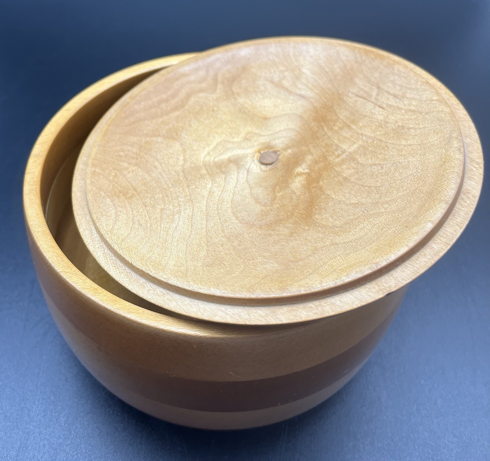 Vintage Inlaid Wood Hand Turned Round Bowl w/Lid - Artist Signed 1992