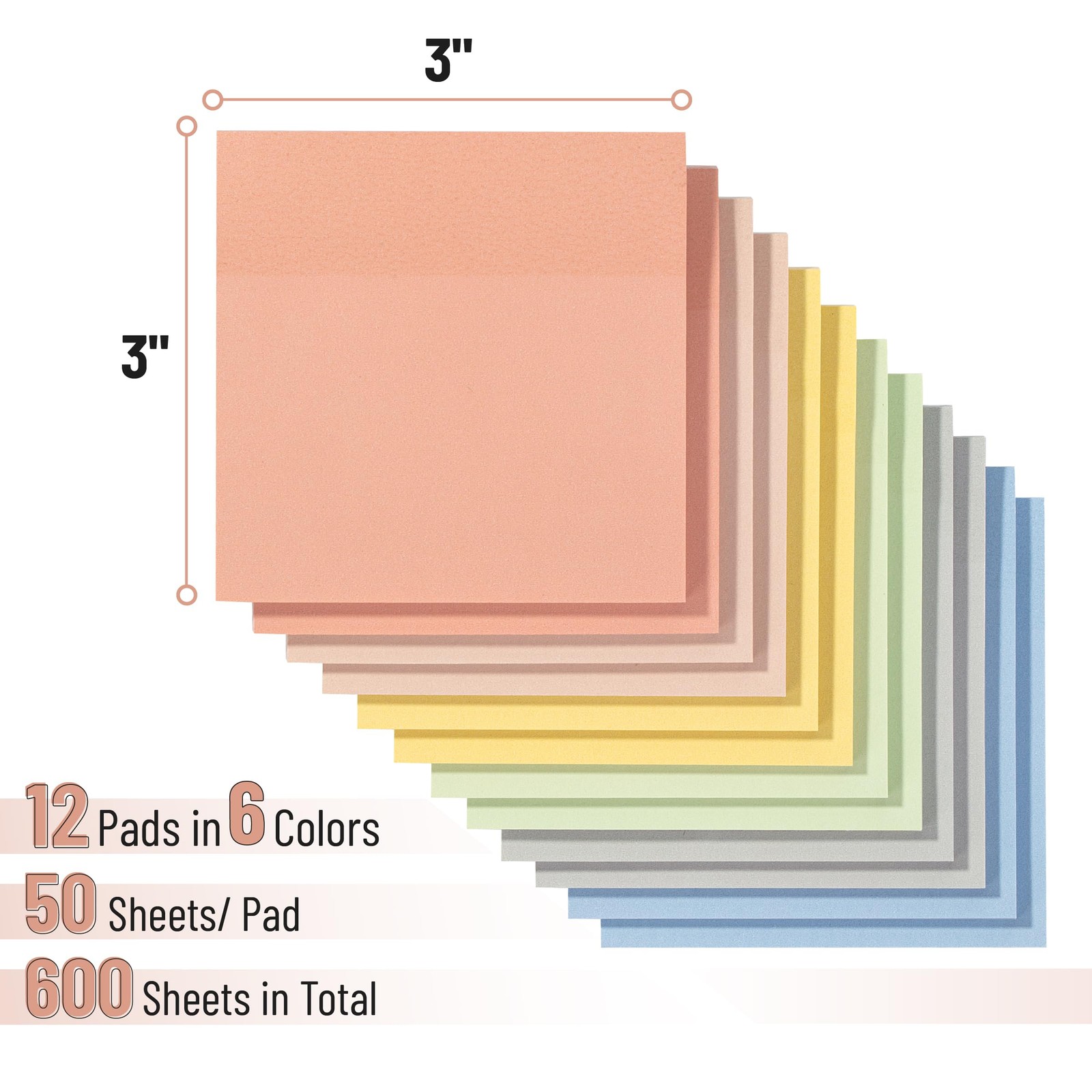 - Sticky Notes, 3 x3 , 12 Pads, 600 Sheets, Colorful Sticky Notes 3x3, Pastel...