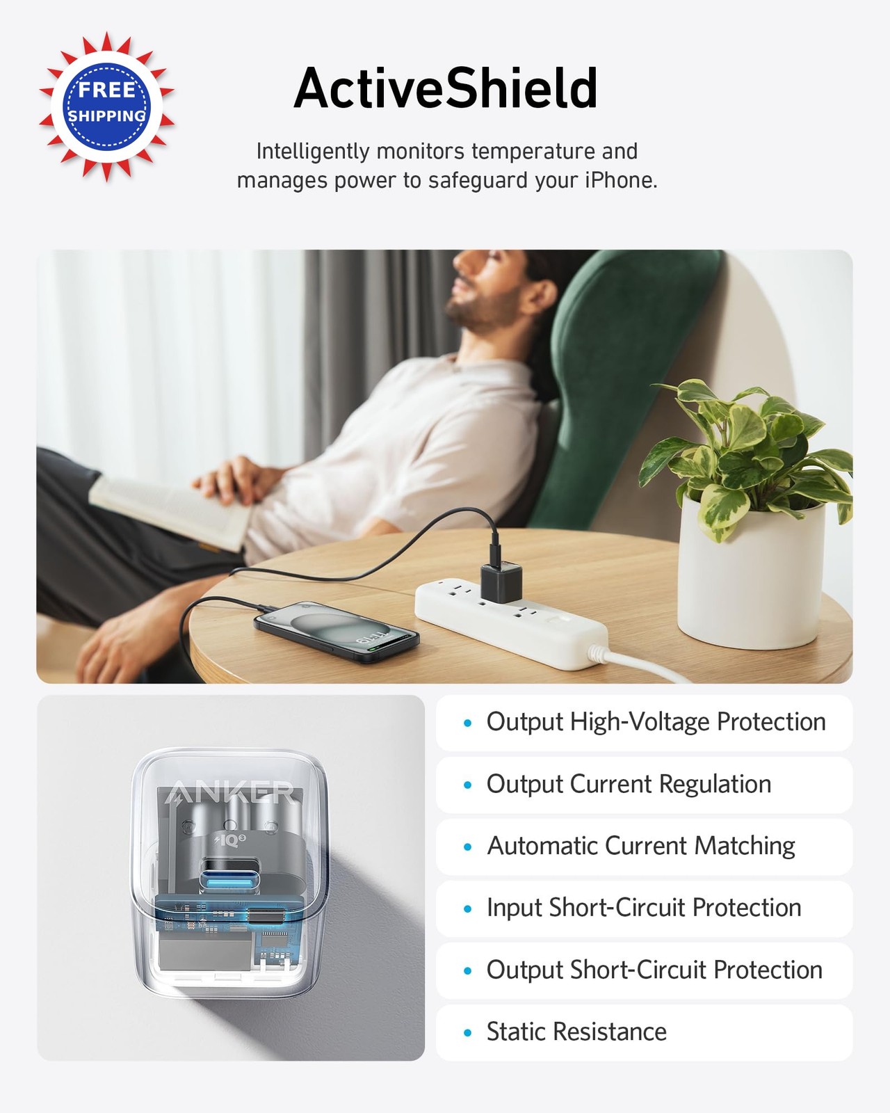 Anker USB C Charger Block 20W PIQ 3 Fast Charging iPhone 17 16 15 Series Galaxy