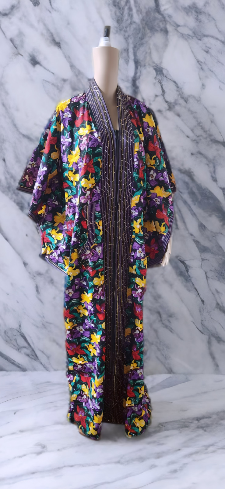 Women's African Print Modern Ankara with Aso-oke and Stones One-size Bubu Dress
