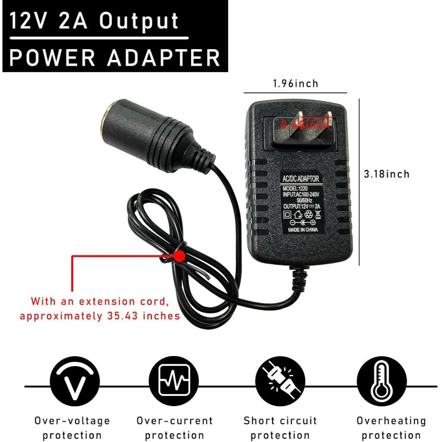 AC to DC Converter, 100-240V to 12V 2A 24W AC/DC Converter, Car Cigarette Lighte