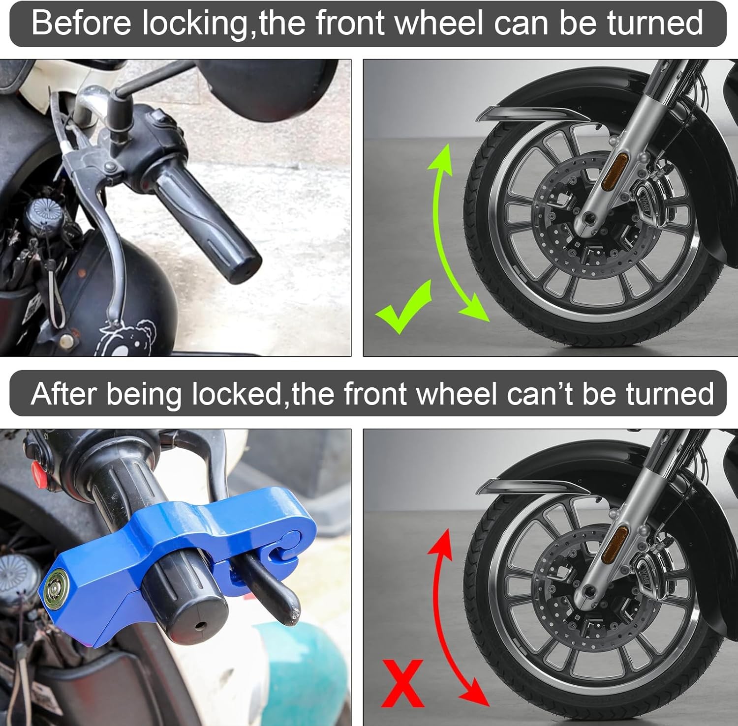 Motorcycle Anti Theft Lock, Heavy Duty Front Brake Lock, Throttle Grip Clutch Br