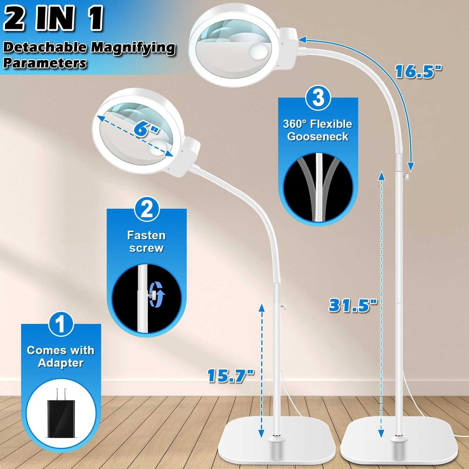 30X 10X Large Floor Magnifying Glass with Light and Stand,72 LED Flexible Goo...