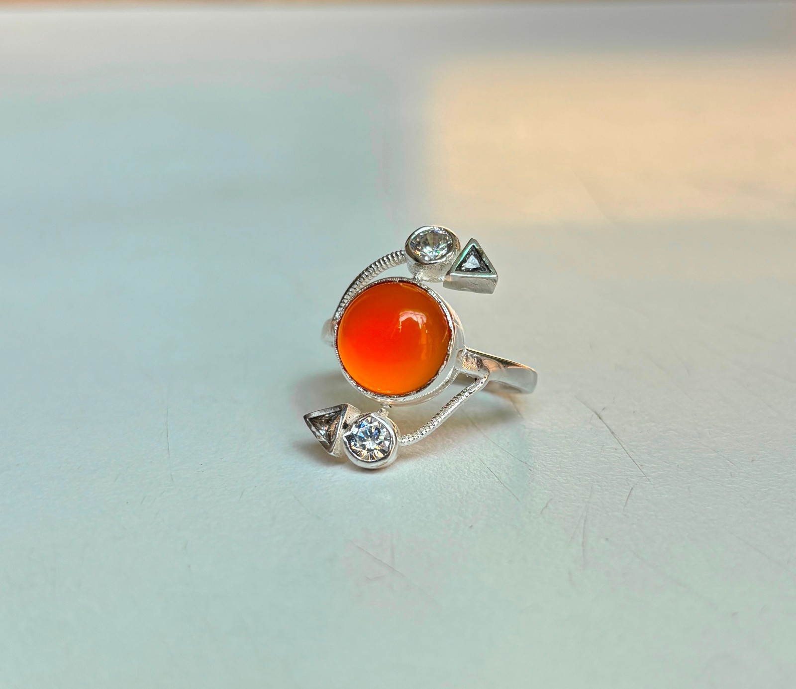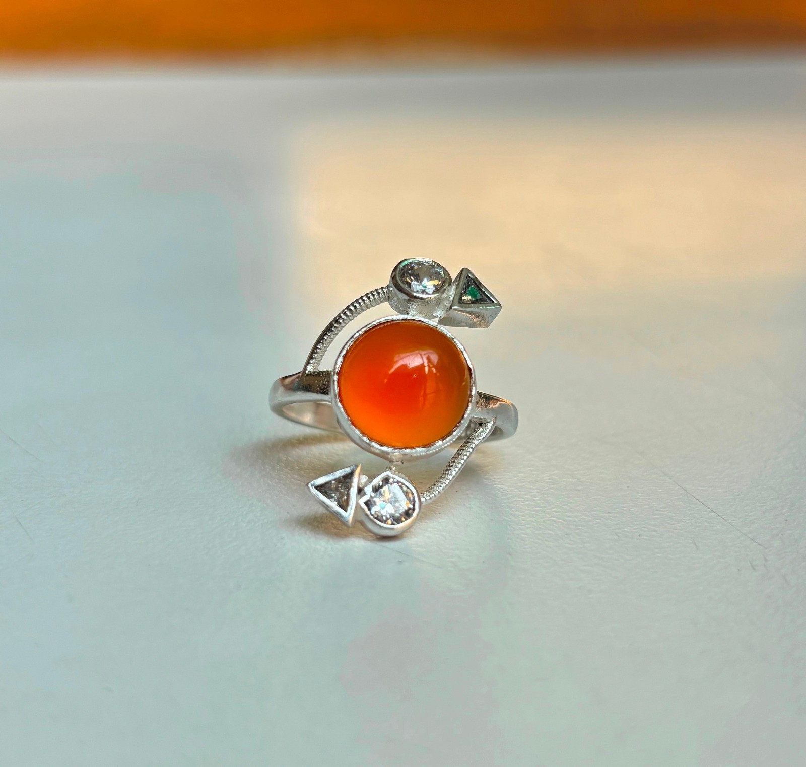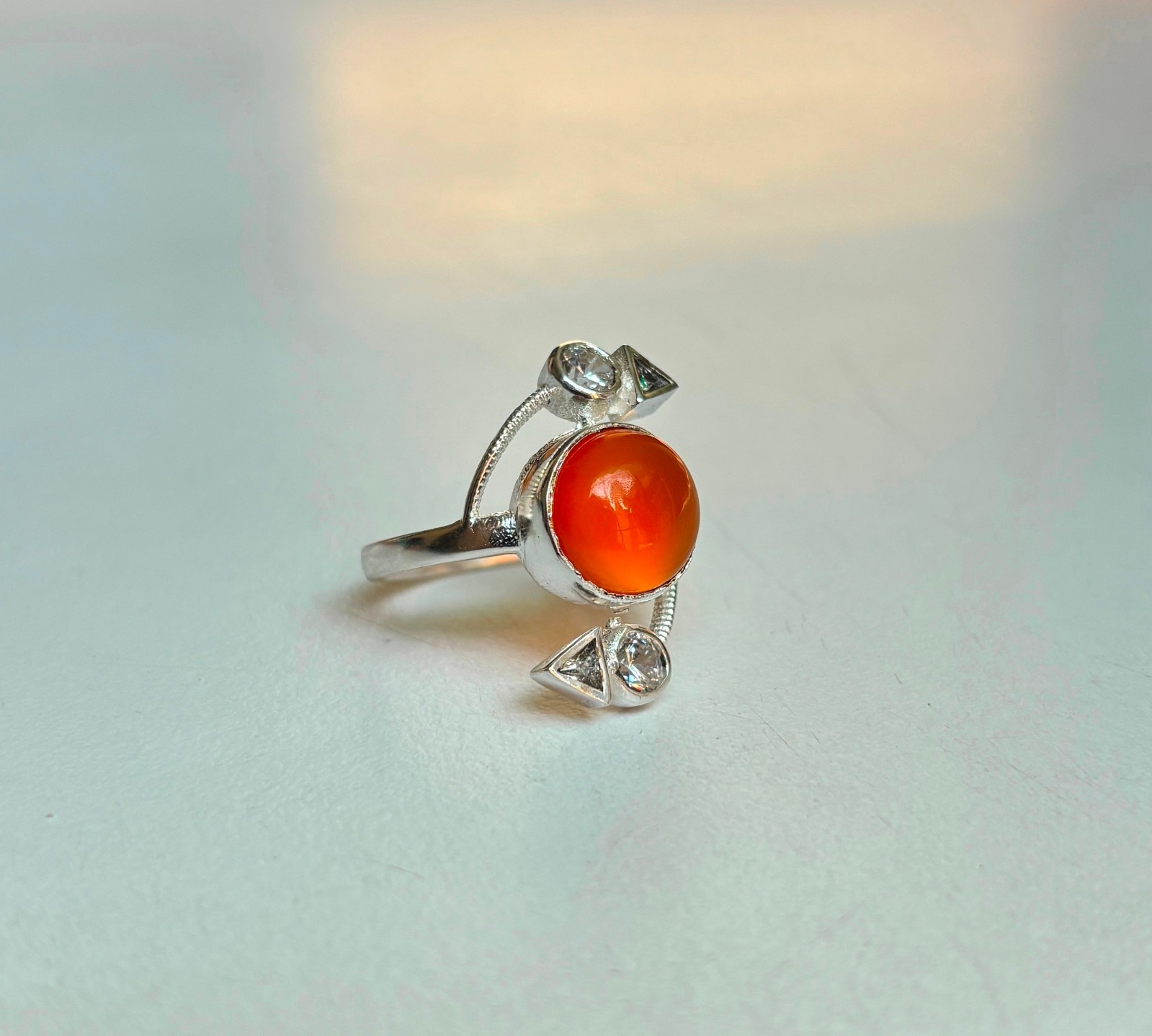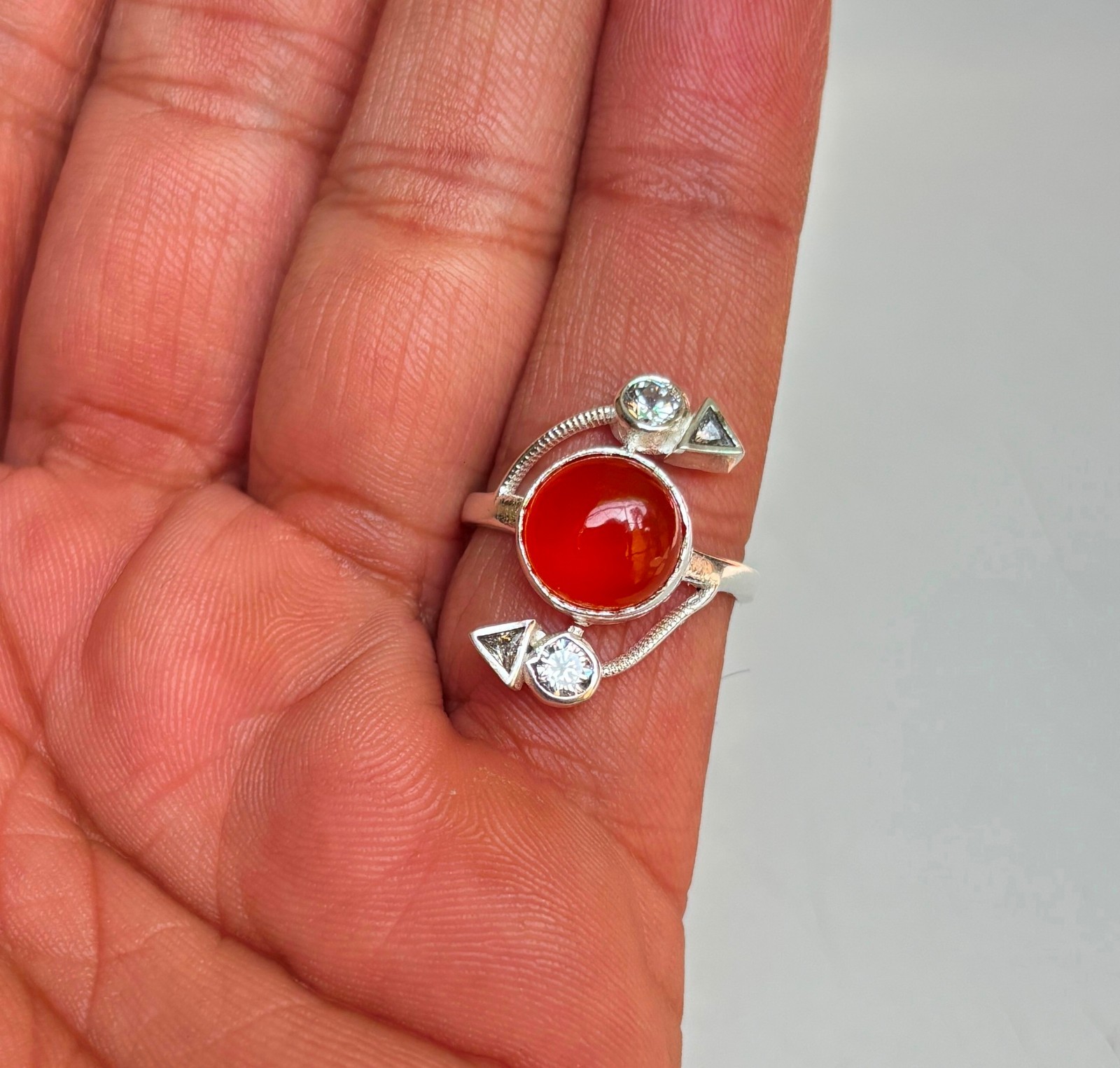 Natural Carnelian Ring 925 Sterling Silver Handmade Gemstone Jewelry For Women