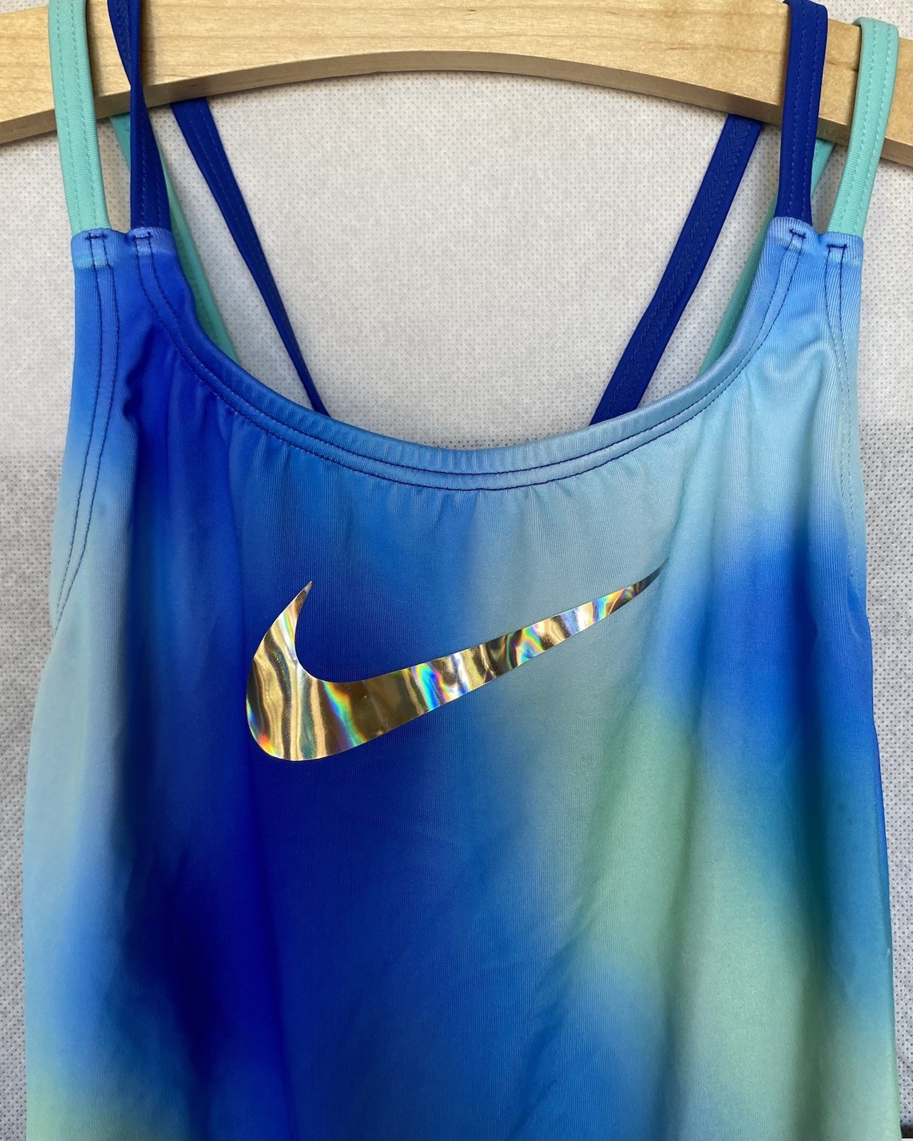 как выглядит NIKE Youth Girls XL 13-15 Yrs Blue Tie Dye Spiderback One-Piece Swimsuit NEW фото