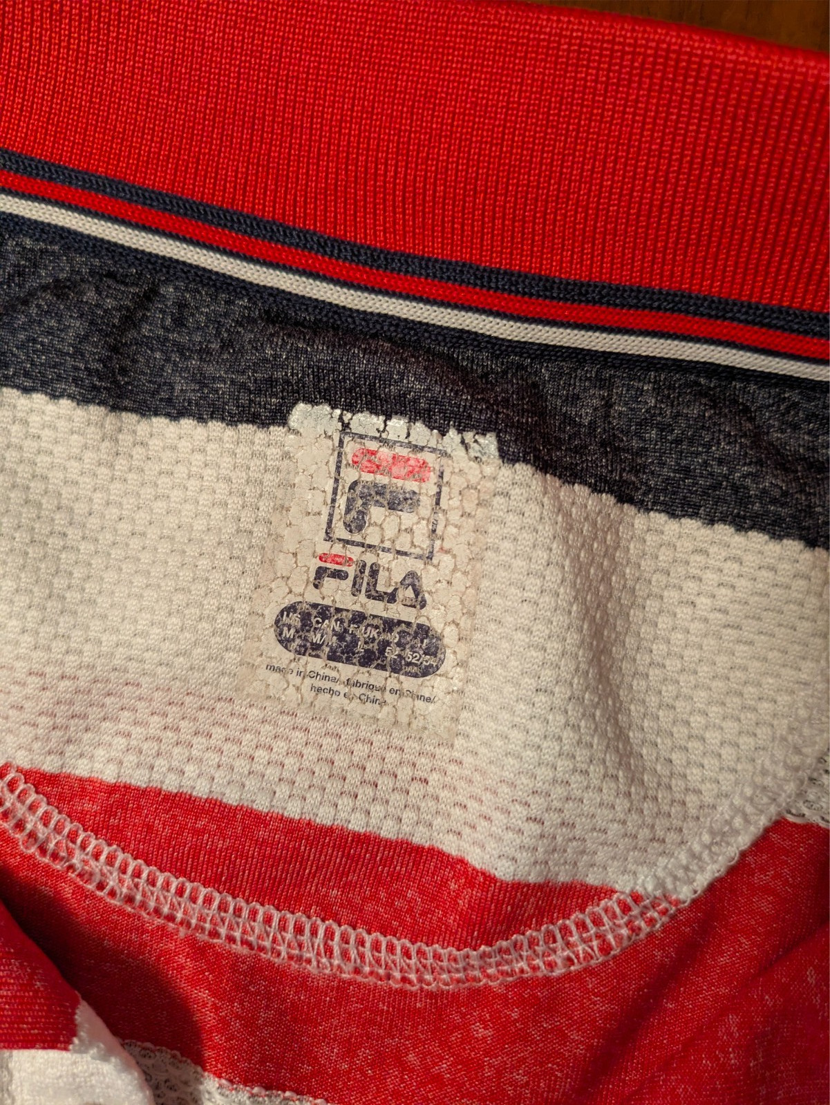 как выглядит MENS POLO SHIRT: Fila Striped Mesh Tennis Short Sleeve Fabrice Thin MEDIUM M фото