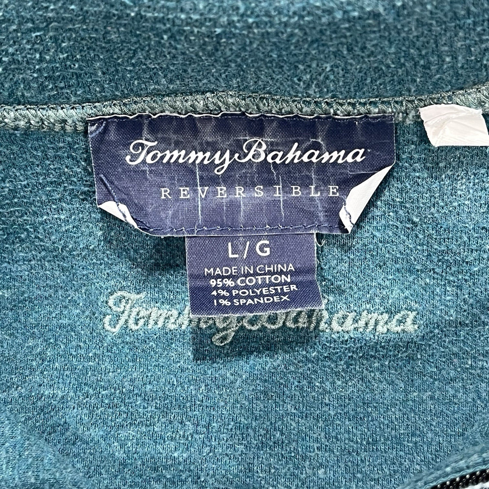 Tommy Bahama Sweater Mens Size Large Blue Teal Reversible Pullover 1/4 Zip Golf