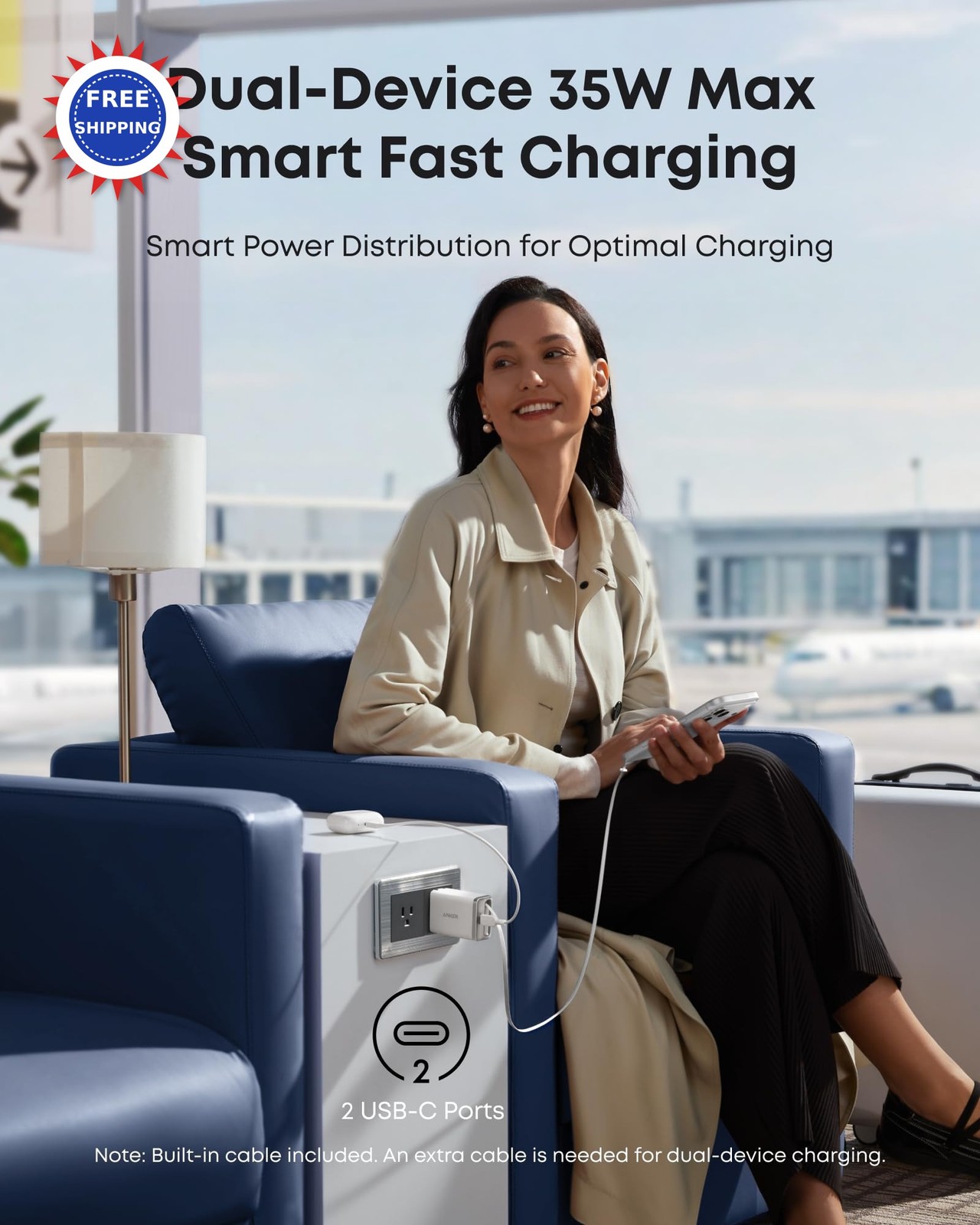 Anker Nano USB C Charger Block 35W Max 2 Port Compact Charger with Anker