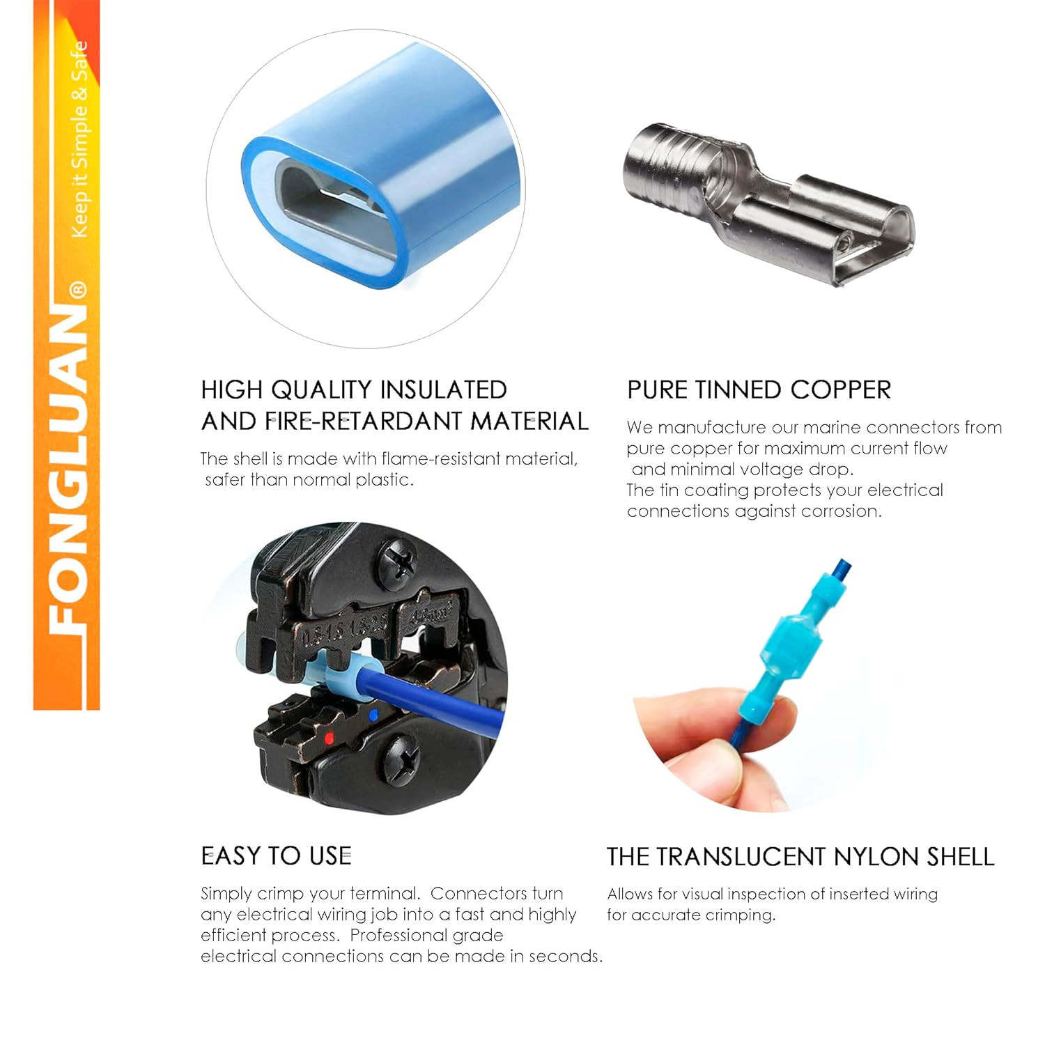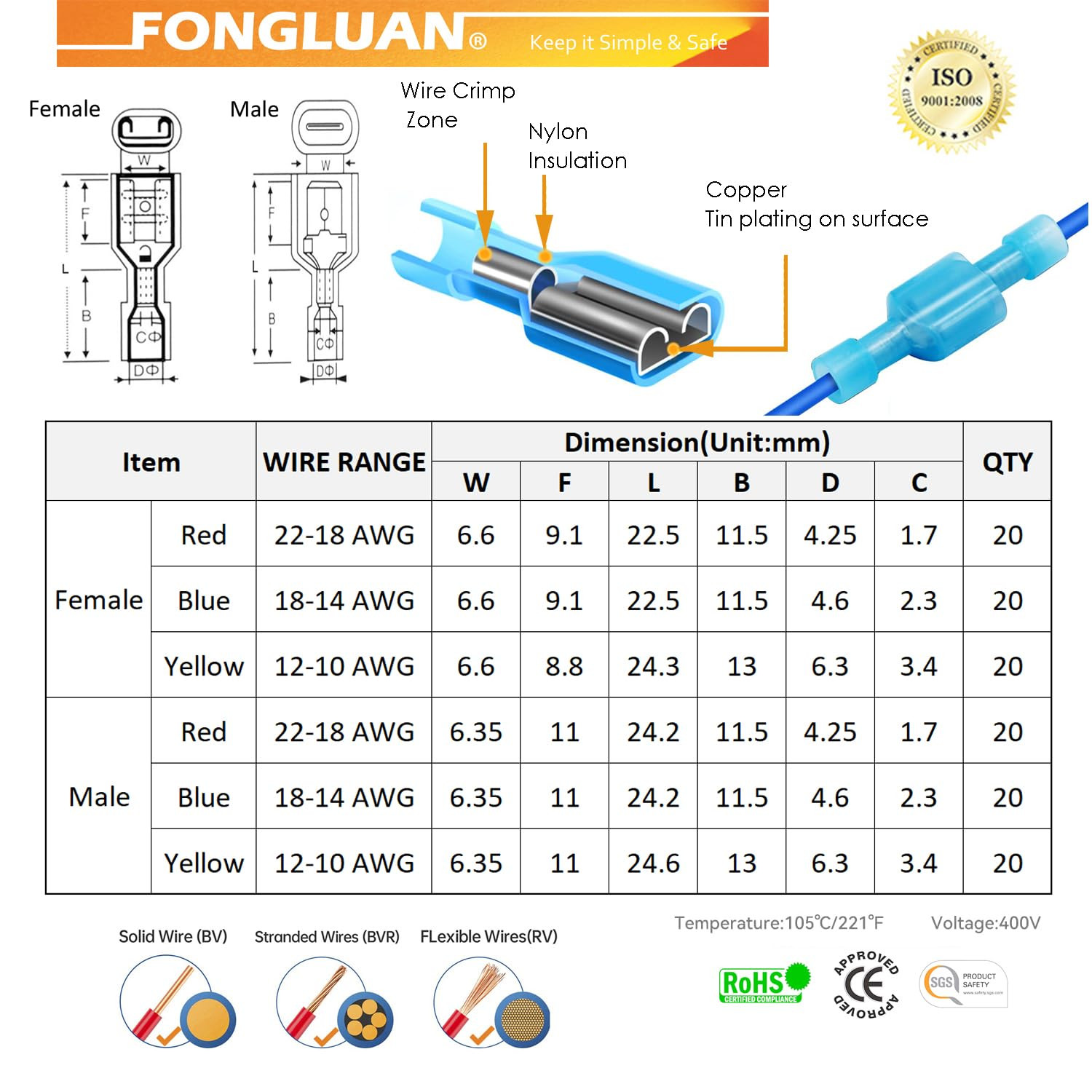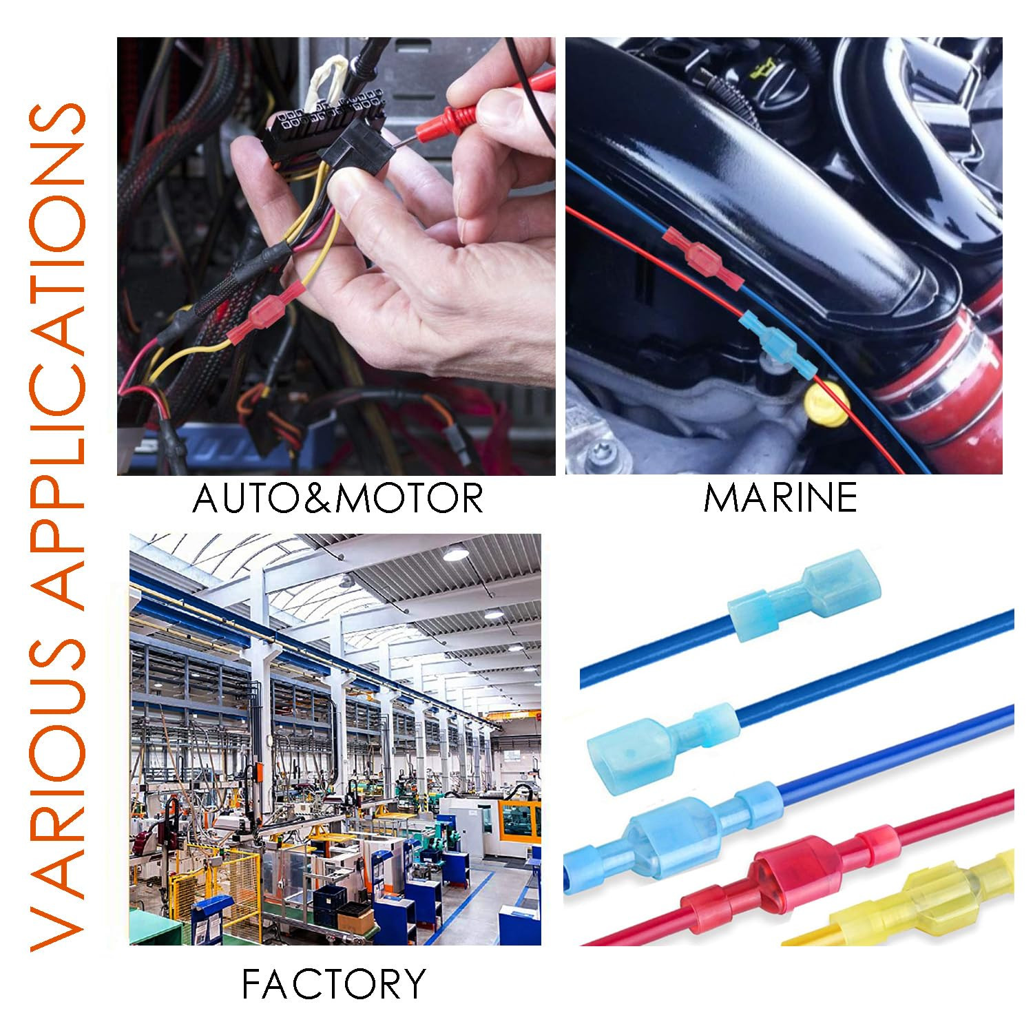 120Pcs Male and Female Spade Connectors 24-10 Gauge Nylon Fully Insulated Wire Q