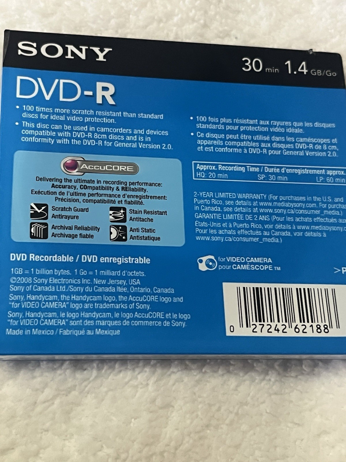Sony Handycam DVD-R 30 Min 1.4GB/GO Recordable Single Disc