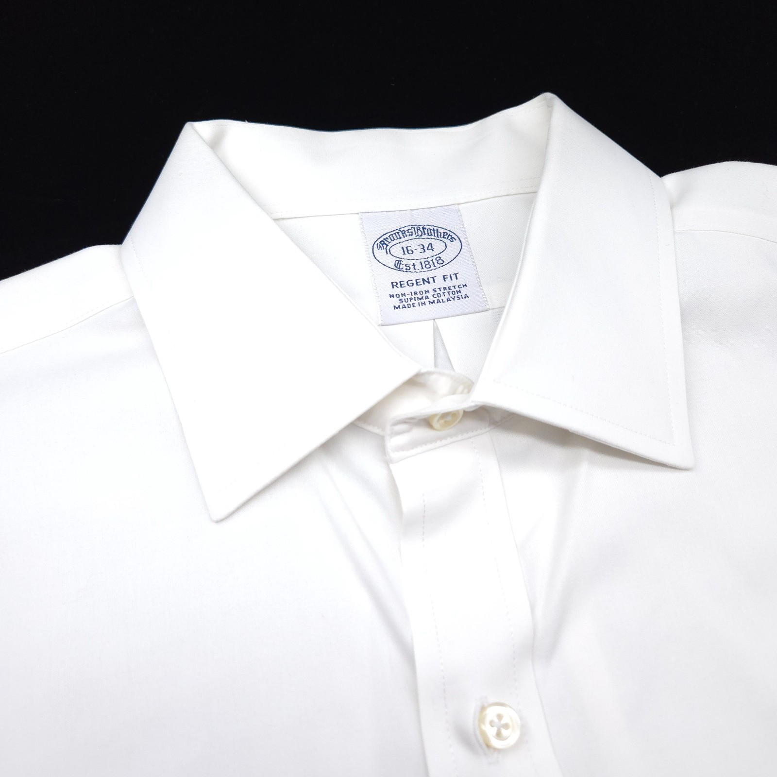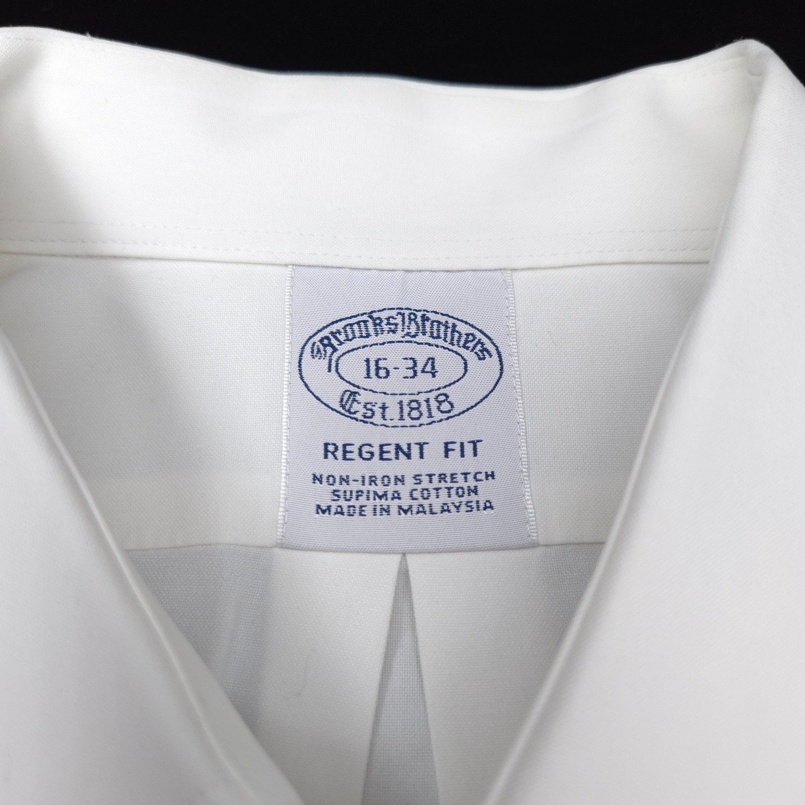 как выглядит BROOKS BROTHERS Dress Shirt -16 34 White Pinpoint OXFORD -STRETCH- REGENT Slim фото
