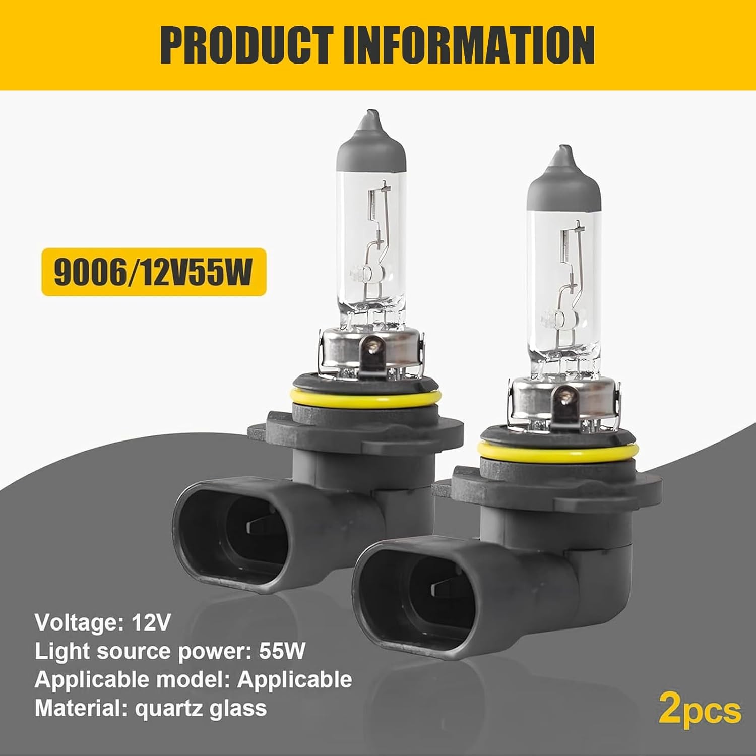 Pack-2 9006 Car High Low Beam Bulb, 12V 55W 1200LM Transparent Shock-resistant Q