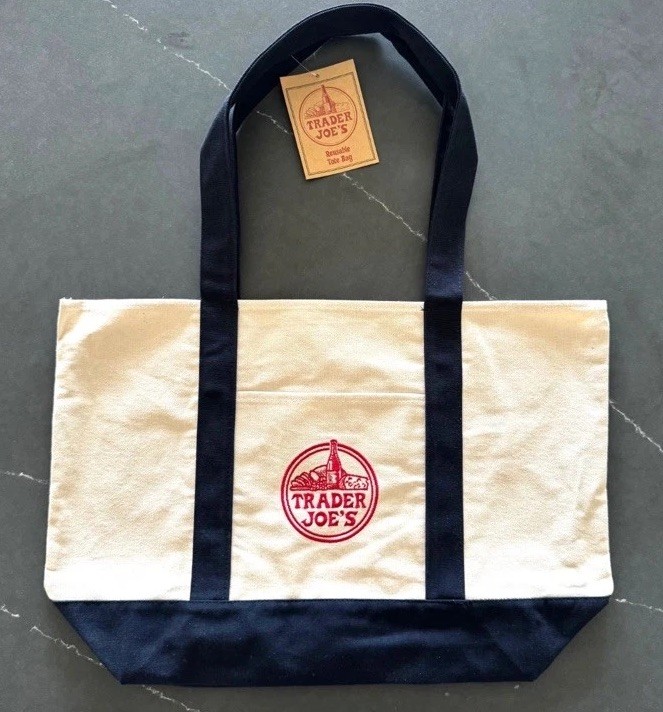 как выглядит TRADER JOES LARGE CANVAS BAG HEAVY COTTON REUSABLE SHOPPING BAG LARGE NAVY BLUE фото