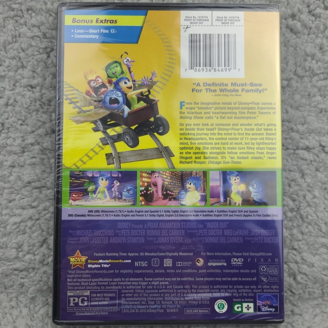 Inside Out Disney Pixar DVD 2015 Sealed Unopened New Amy Poehler Bill Hader