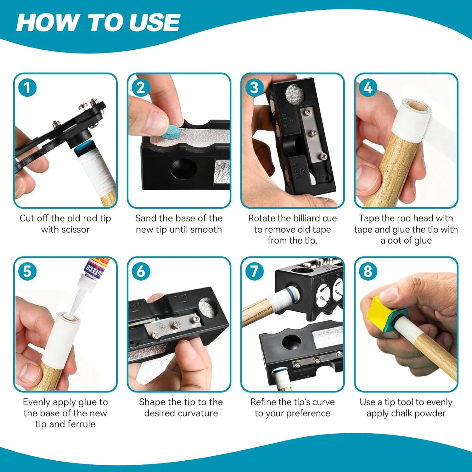 11-In-1 Pool Cue Tips Shaper, Pool Cue Tips Replacement Kit, Pool Cue Repair Kit