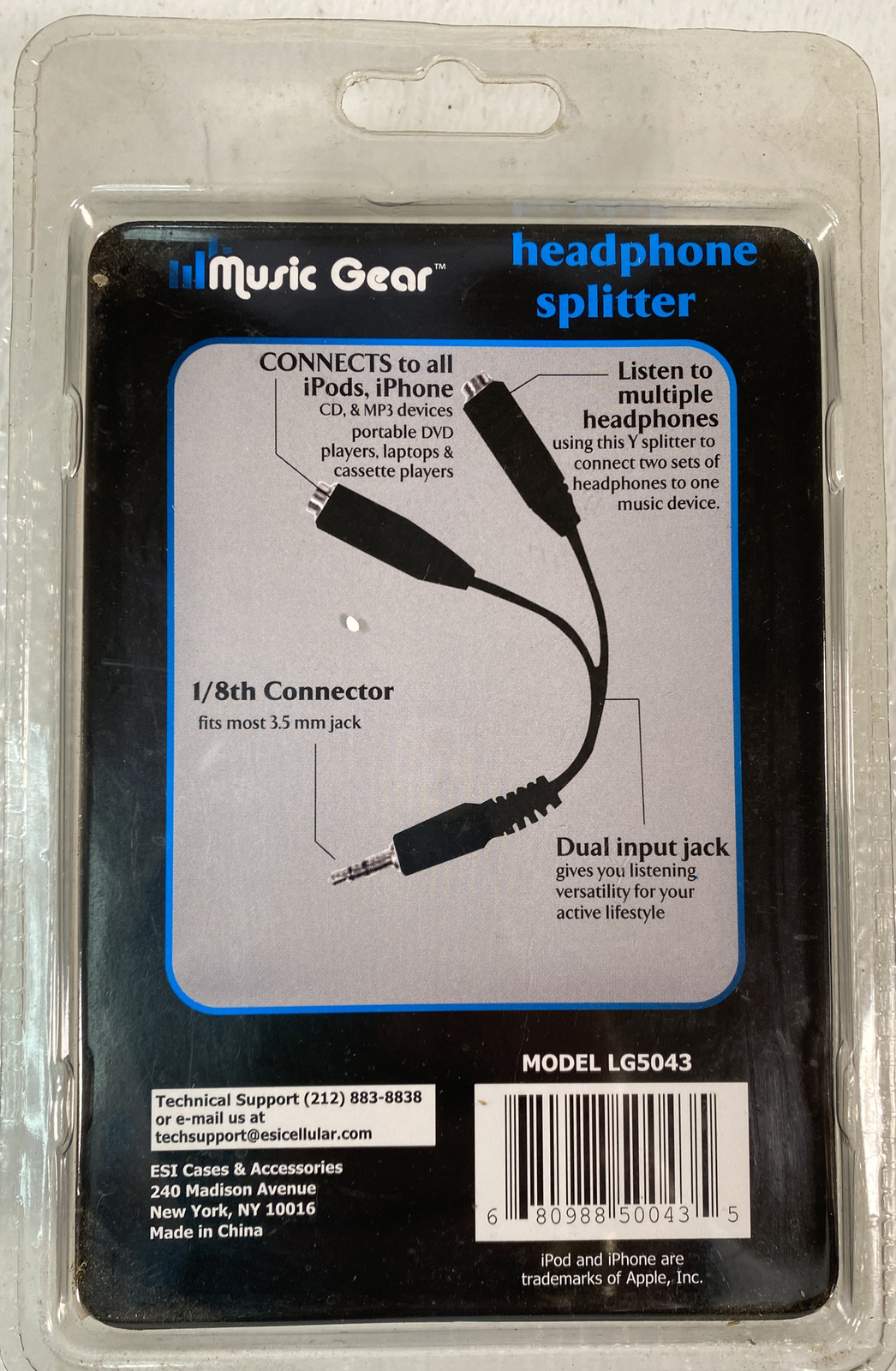 Music Gear Headphone Splitter LG5043 1/8th Connector iPHONE MP3s CDs DVD Players