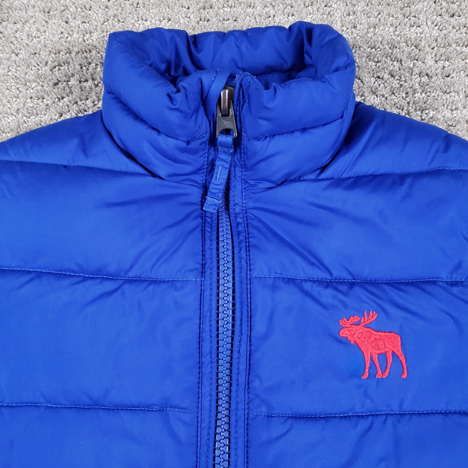как выглядит Abercrombie Fitch Kids Puffer Vest Jacket L Blue Embroidered Moose Boy Girl фото