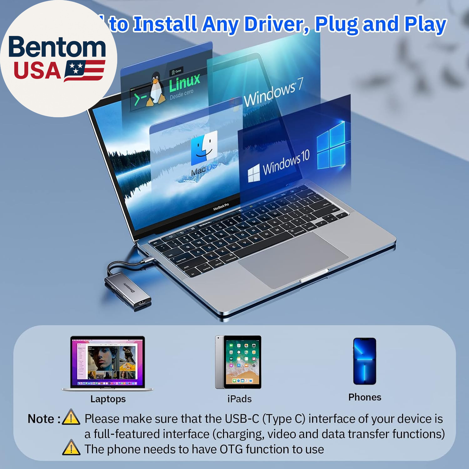 USB C Dock,7 in 1 USB C Hub Multiport Adapter with 4K HDMI,3X USB 3.0,100W Power