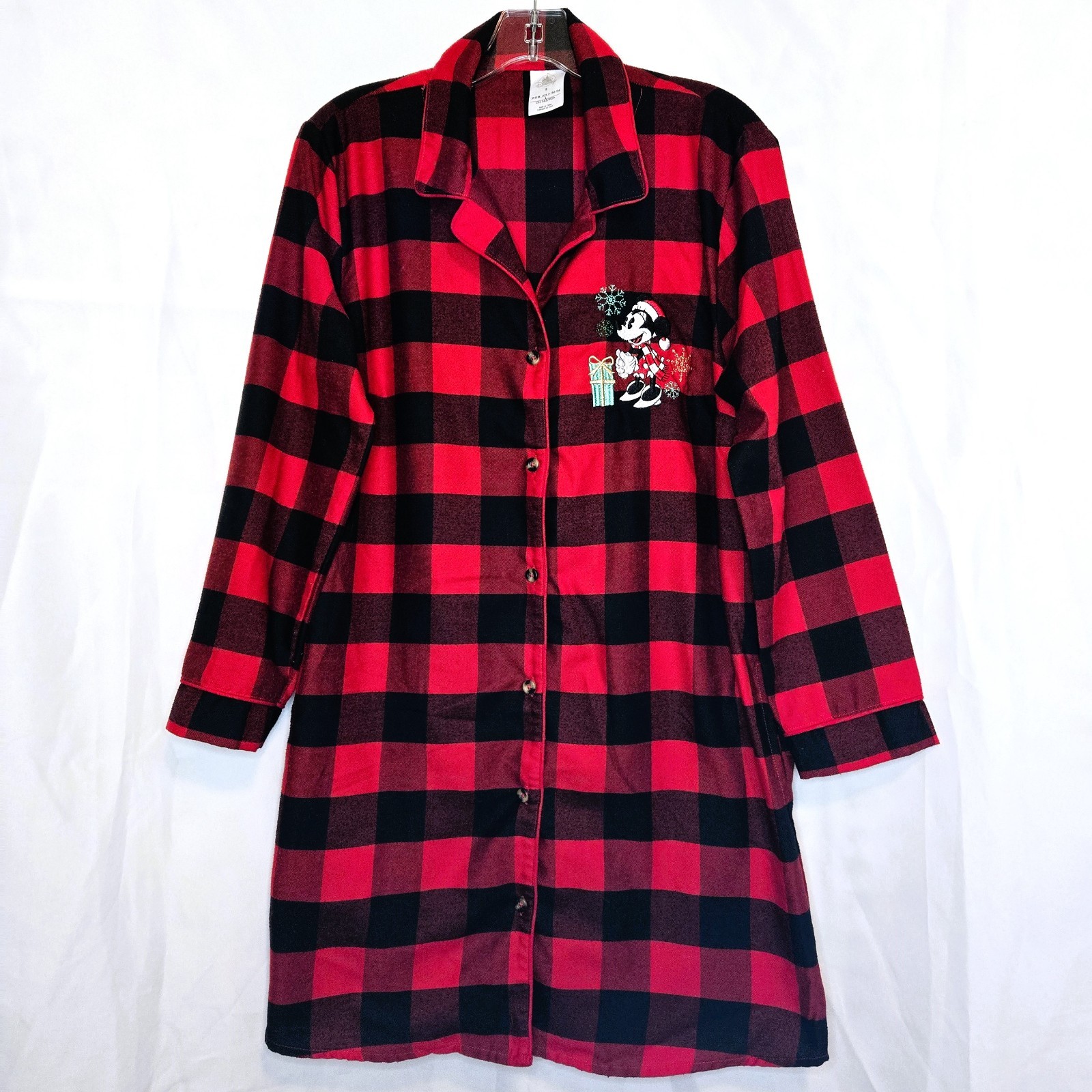 DISNEY PJ Minnie Mouse Nightgown Plaid Red Black Soft Nightshirt Women Sz Small