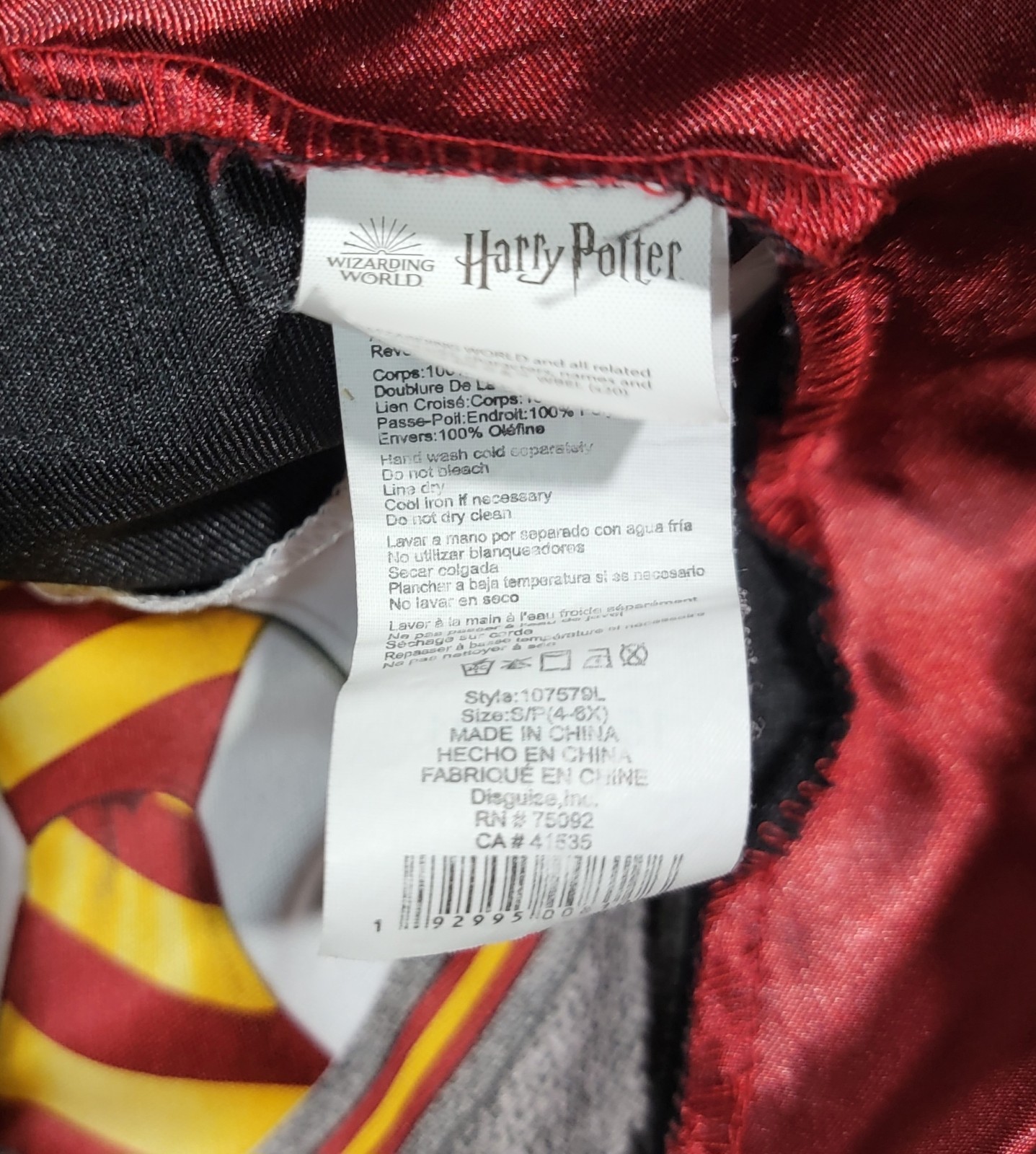 как выглядит Wizarding World Harry Potter Gryffindor Hooded Robe Scarf Kids Costume фото