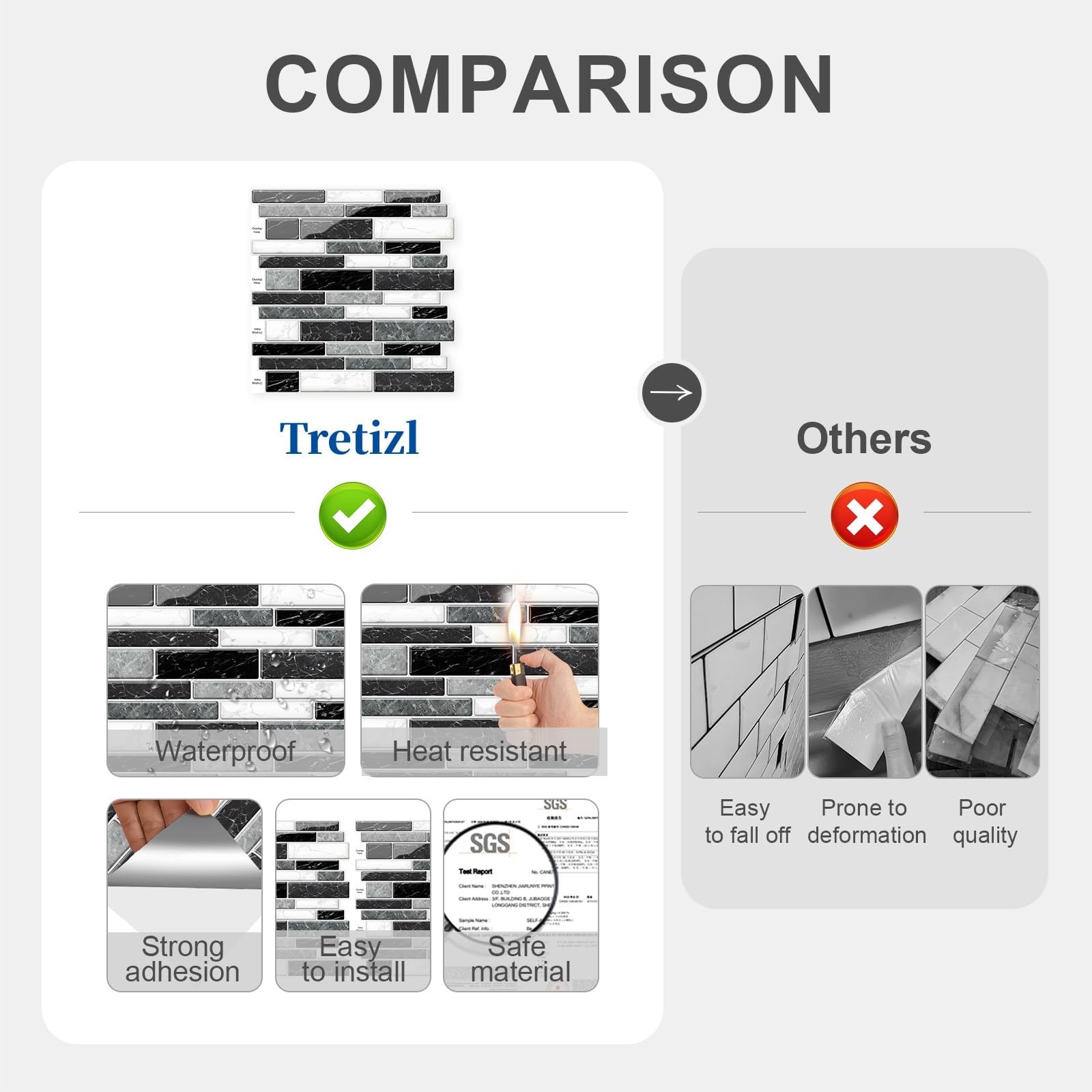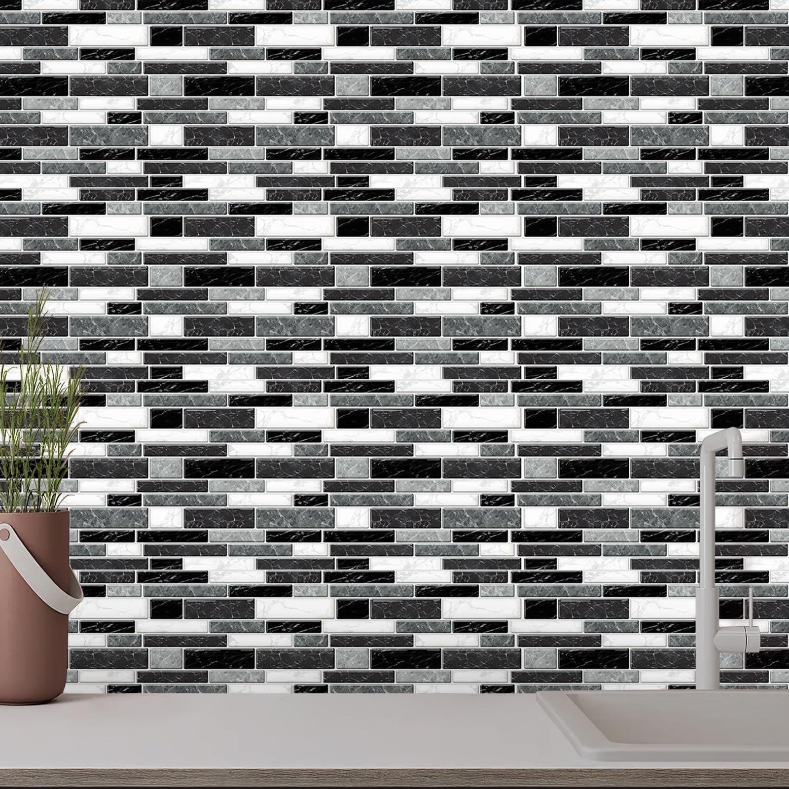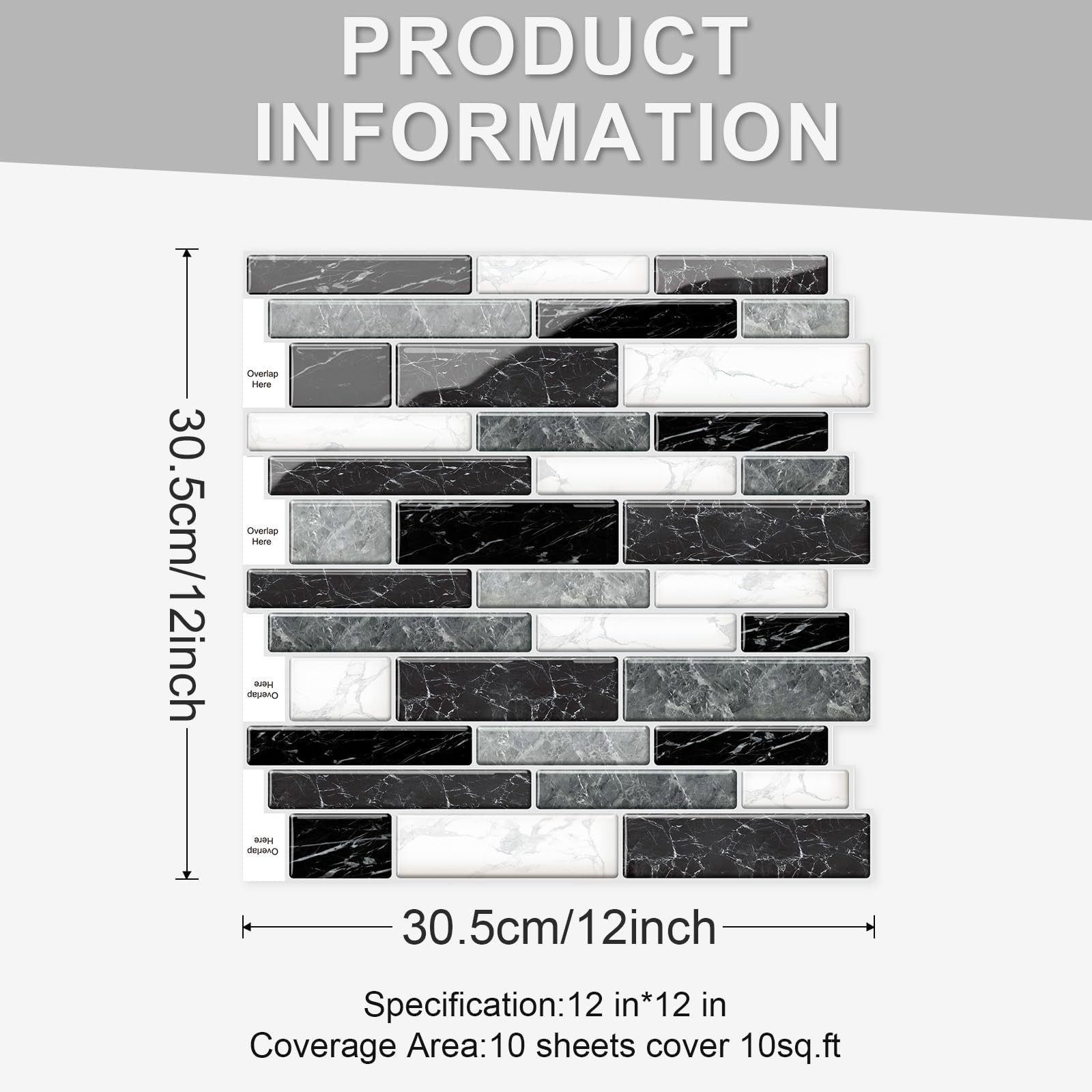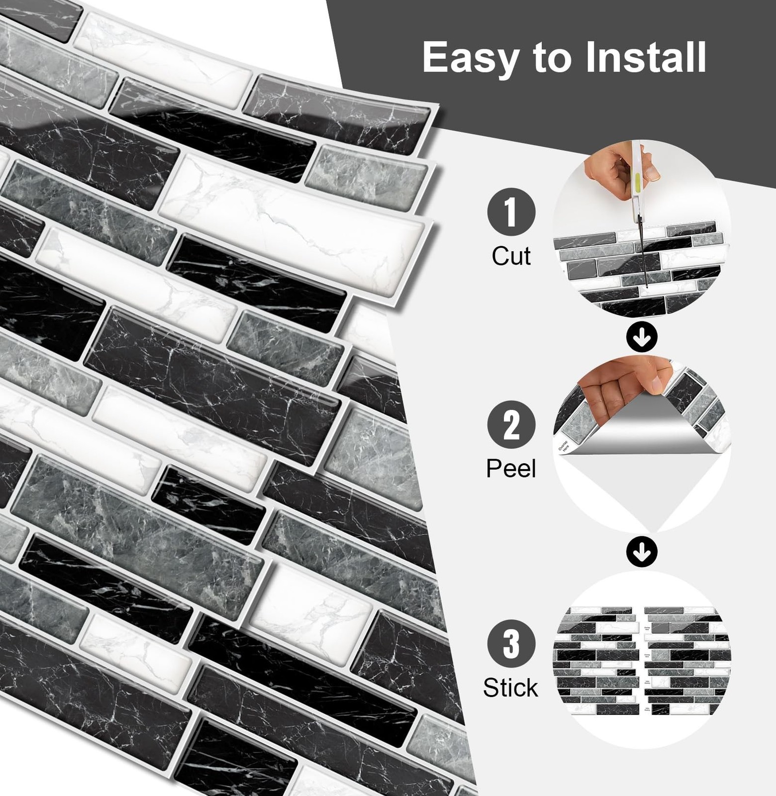 10 Sheets Peel and Stick Backsplash, Peel and Stick Wall Tiles, Marble Look T...