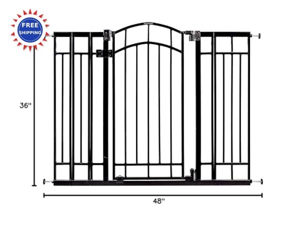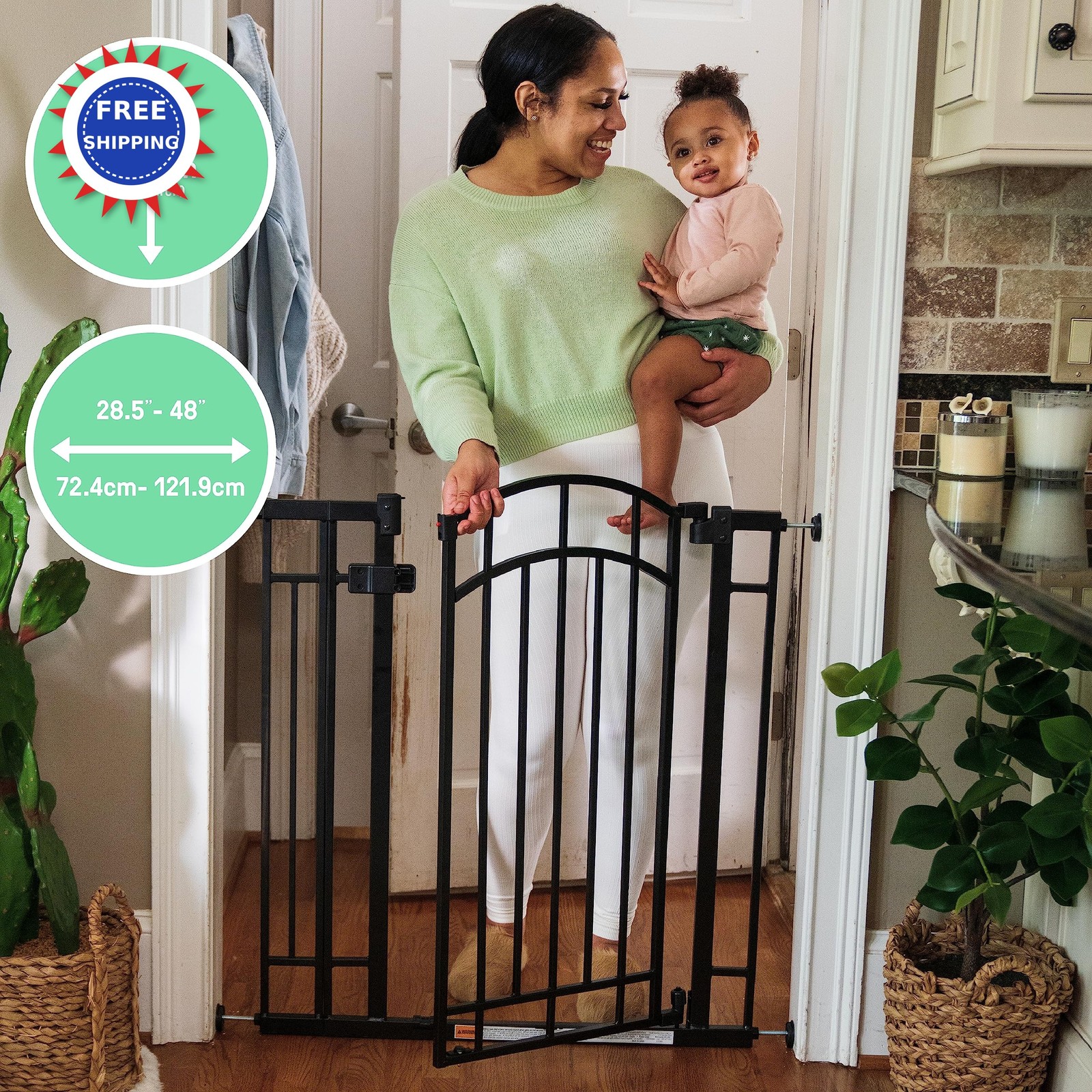 Ingenuity 48 Inch Decorative Extra Tall Walk Thru Baby Gate Black Metal