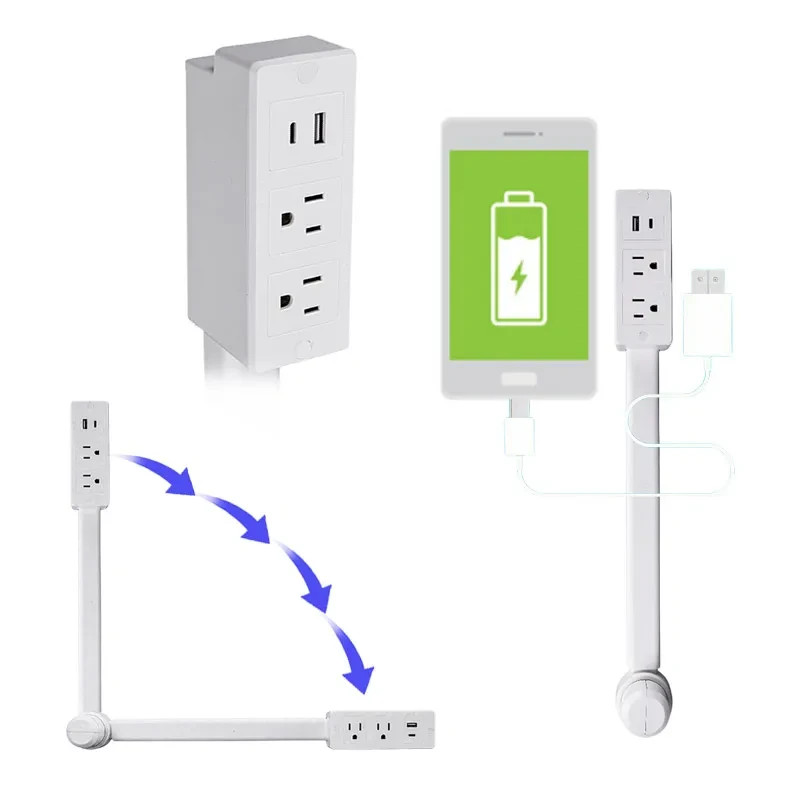 Electrical Outlet Expander Power Socket Rotating Extender Sofas Nightstands Desk