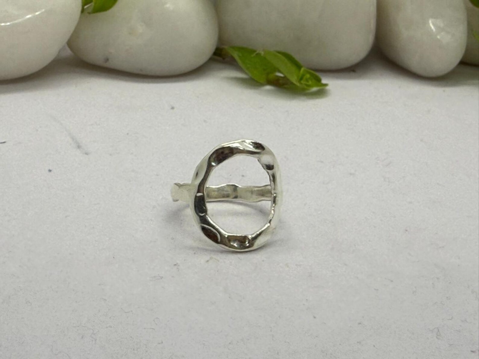 как выглядит Hammered Silver Open Ring Modern Artisan Band unique and high-quality jewelry. фото