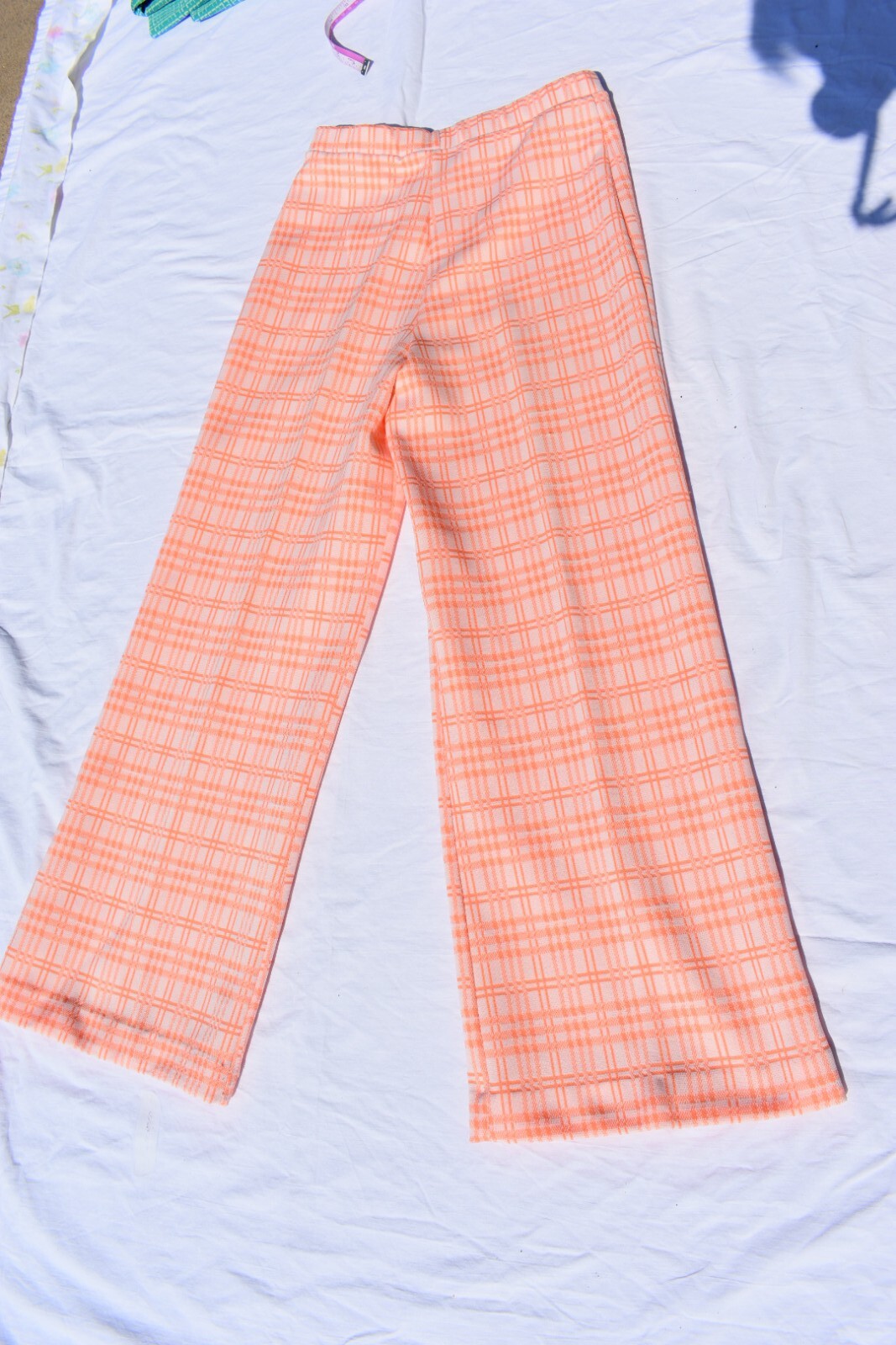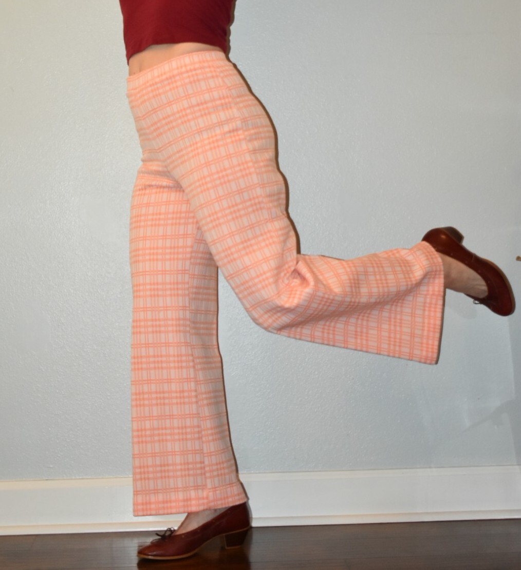 VTG 70s Womens 10 Plaid Knit High Rise Wide Leg Flare Pants Hemmed